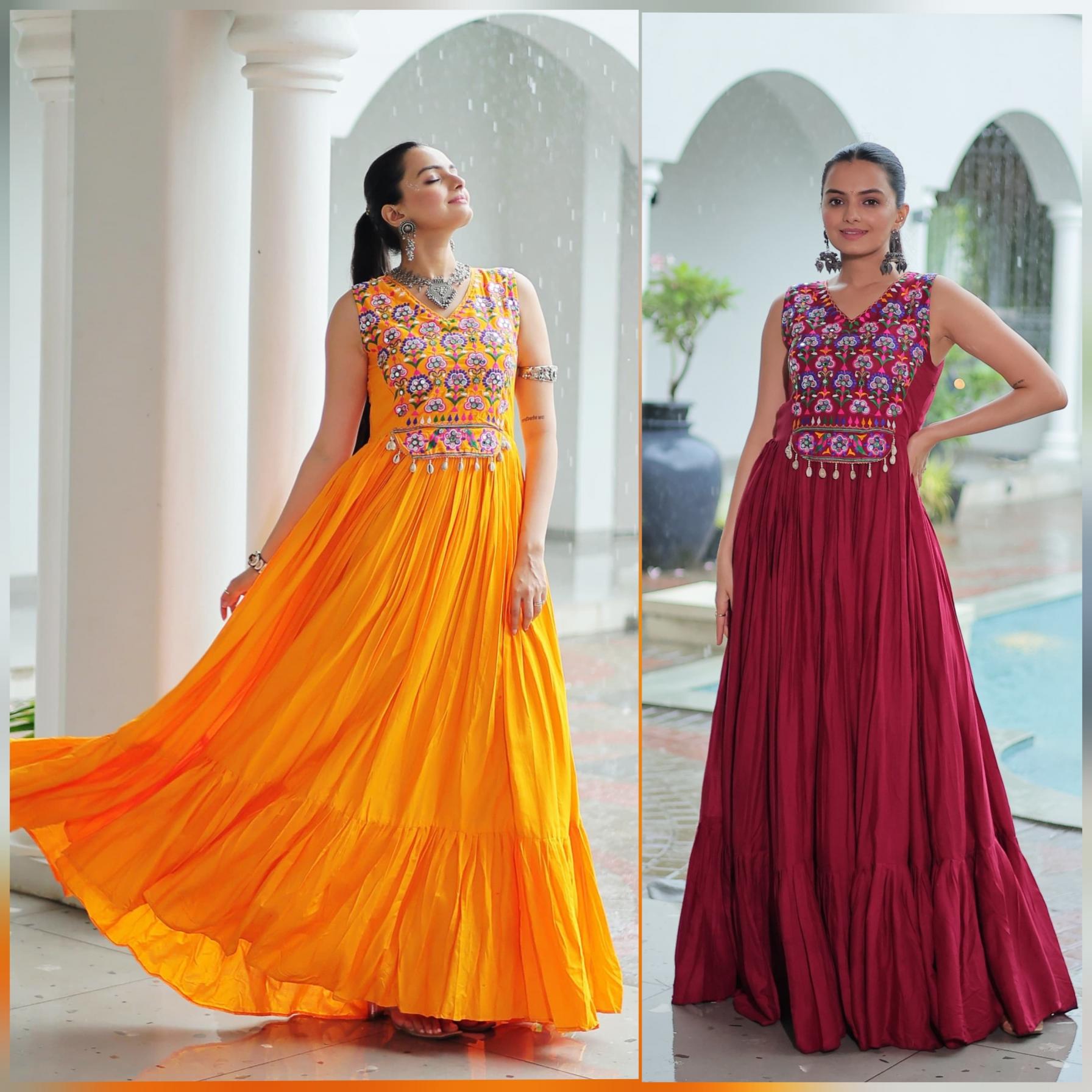 💃🏻 NAVRATRI COLLECTIONS-2025 🤳 #Gownlove💕 Code:- LW-9258 Gown :-👇🏻 👉🏻 Colour :- 2 (Maroon, Yellow) 👉🏻 Package Contains :- Gown 👉🏻 Weight :- 0.900 kg 👉🏻 Rate :- 899/-INR |