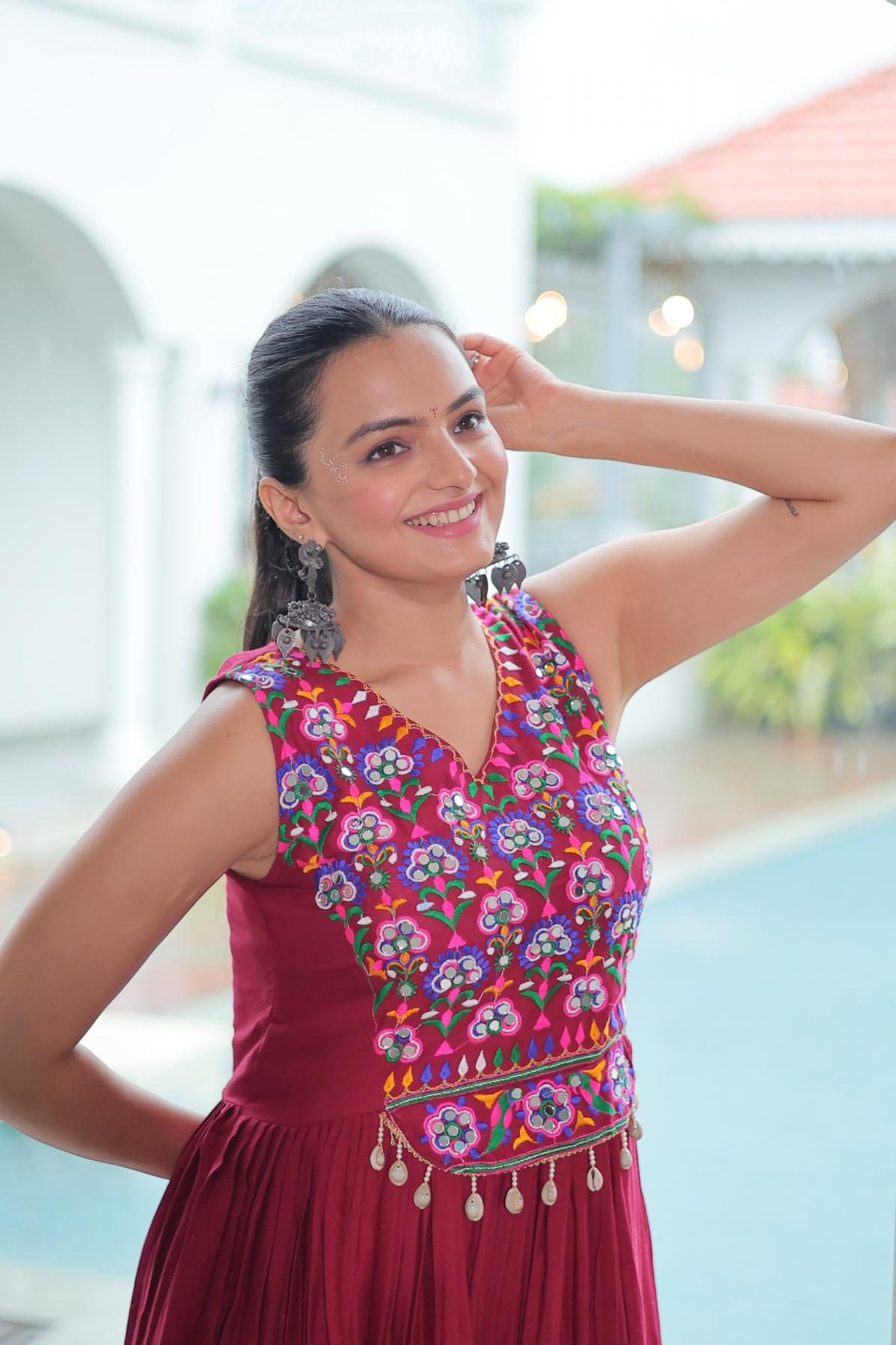 lw 9258 fully stitch rayon gamthi thread work navratri special gowns for girls