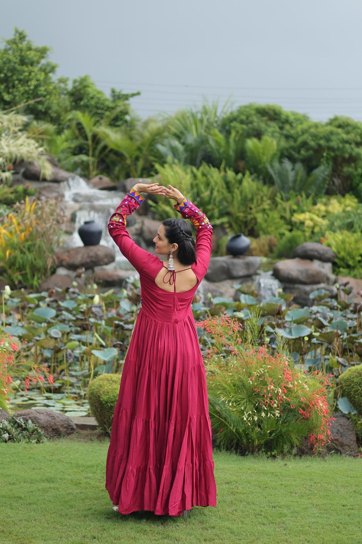 lw 9261 rayon fully stitch gamthi work navratri special flair gowns