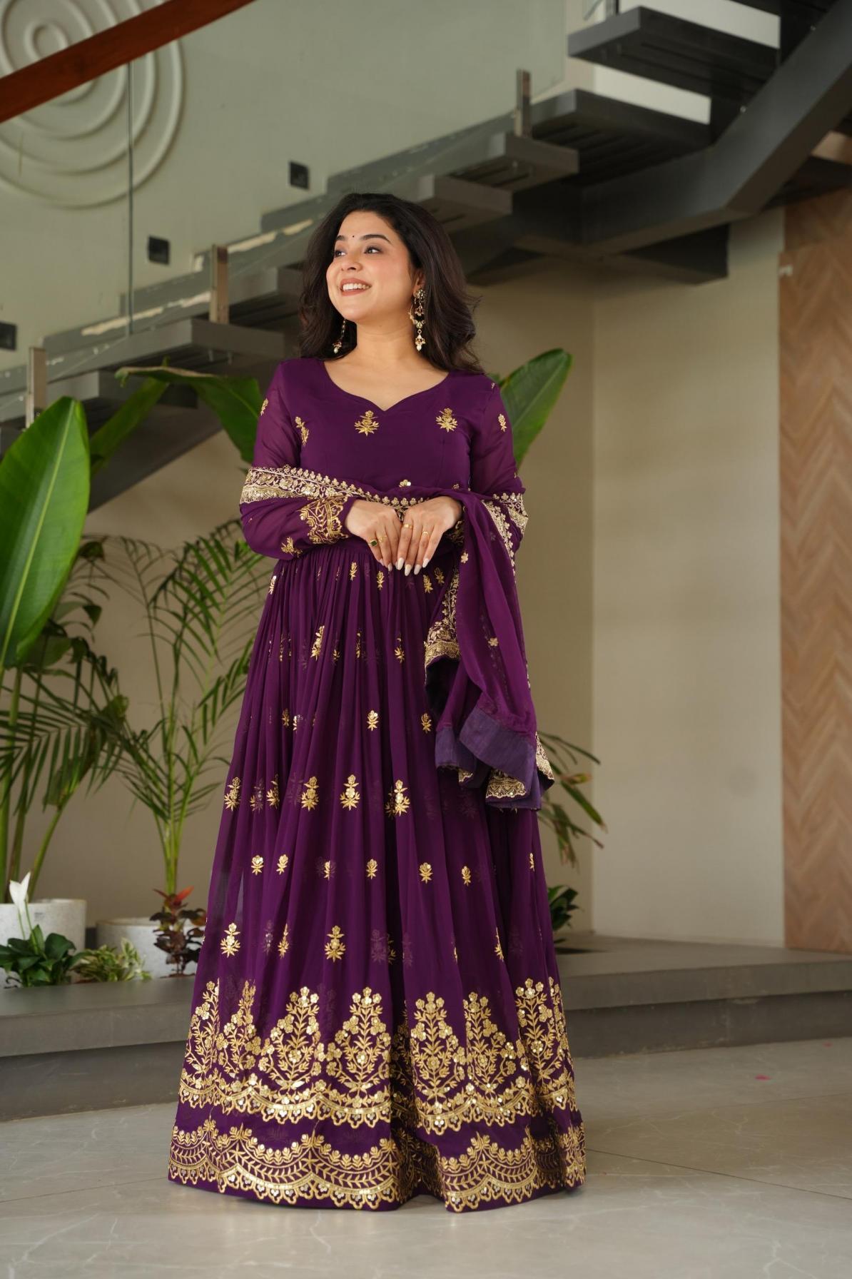 💃 PREMIUM DESIGNER READYMADE GOWN-DUPATTA COLLECTIONS 2025 👜 #Gownwithdupatta Code:- LW-9279 This Faux Blooming Designer Gown is luxury clothing Considered to be high quality Made by Zari Thread & Sequins Embroidery. This is Made for Desirable Women's who deserve it. GOWN :- 👇🏻 DUPATTA :-👇🏻 👉🏻 PACKAGE CONTAIN :-Gown-1,Dupatta-1 👉🏻 WEIGHT :- 0.950 KG 👉🏻 COLOUR :- 2 (Purple, Maroon) 👉🏻 RATE :- 1600/-₹ |