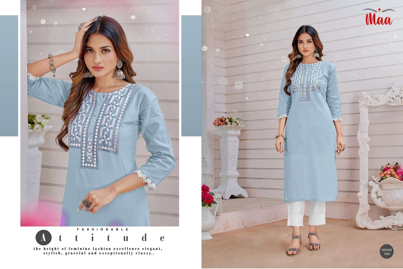 maa creation amore cotton readymade neck work kurtis wholesale