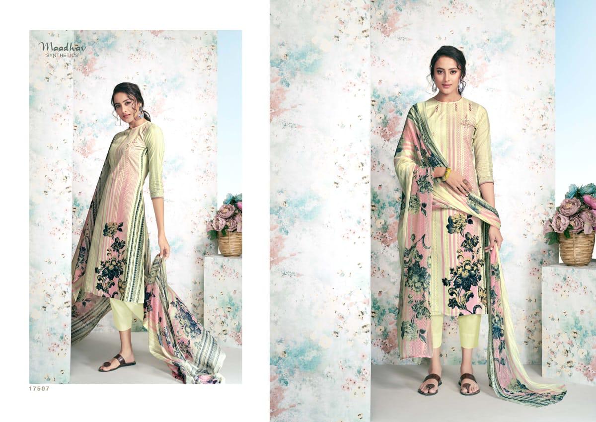 Maadhav Synthetics Presents Latest Collection Launched on 05-03-2020. Presenting Beautiful collection of 8 PCS with Unstitched .