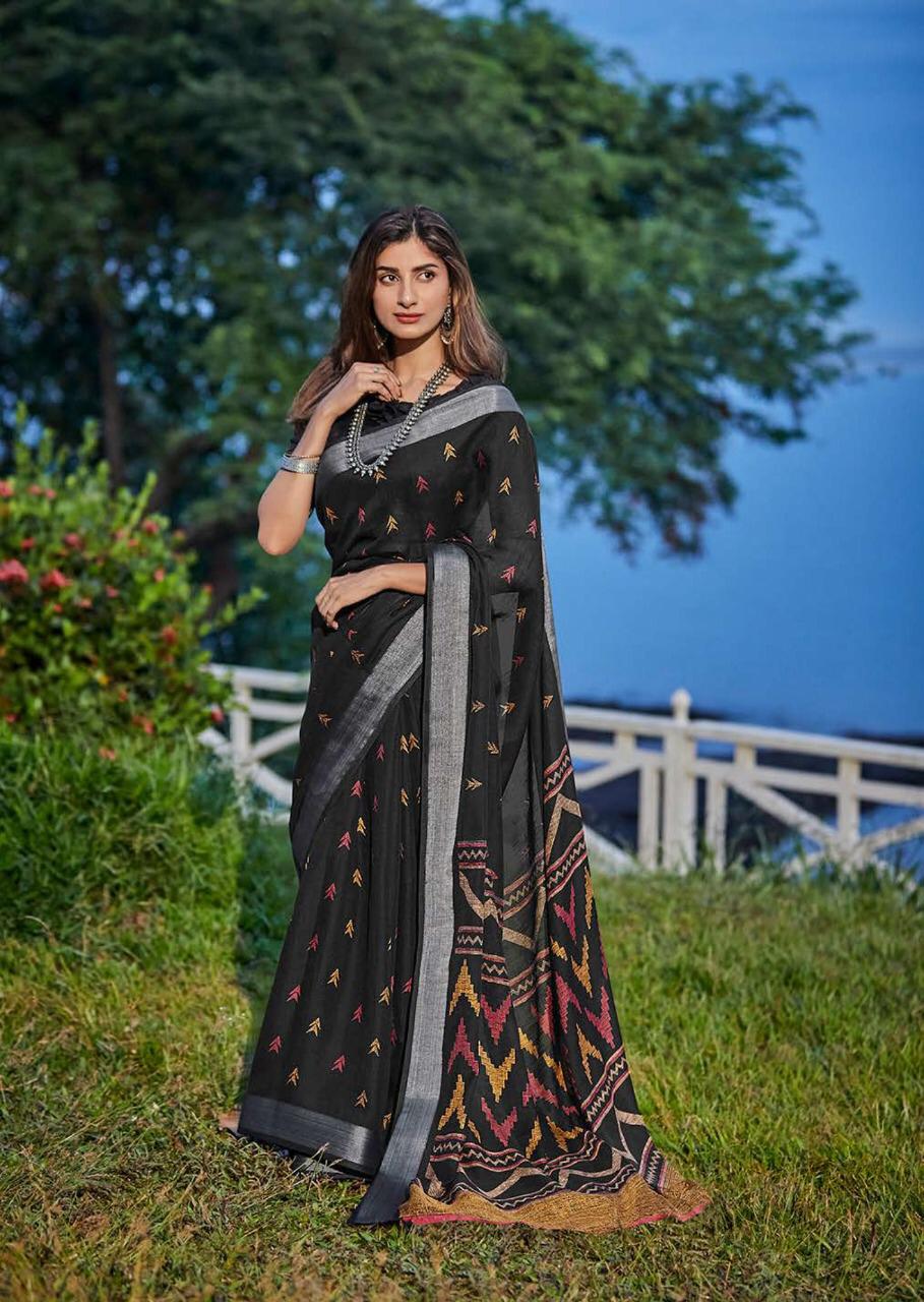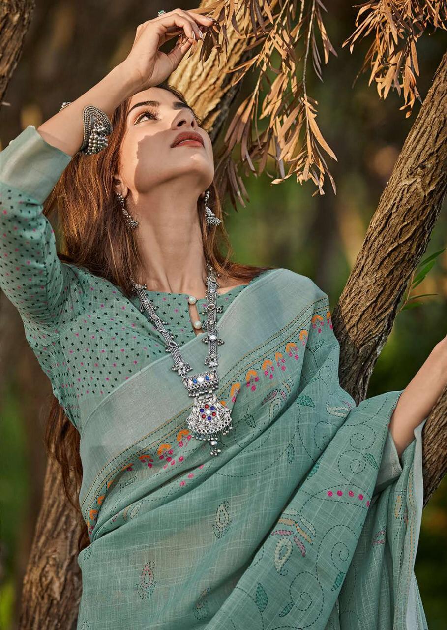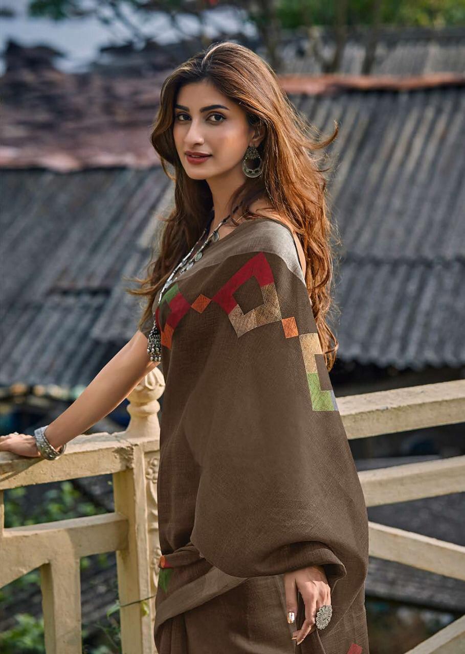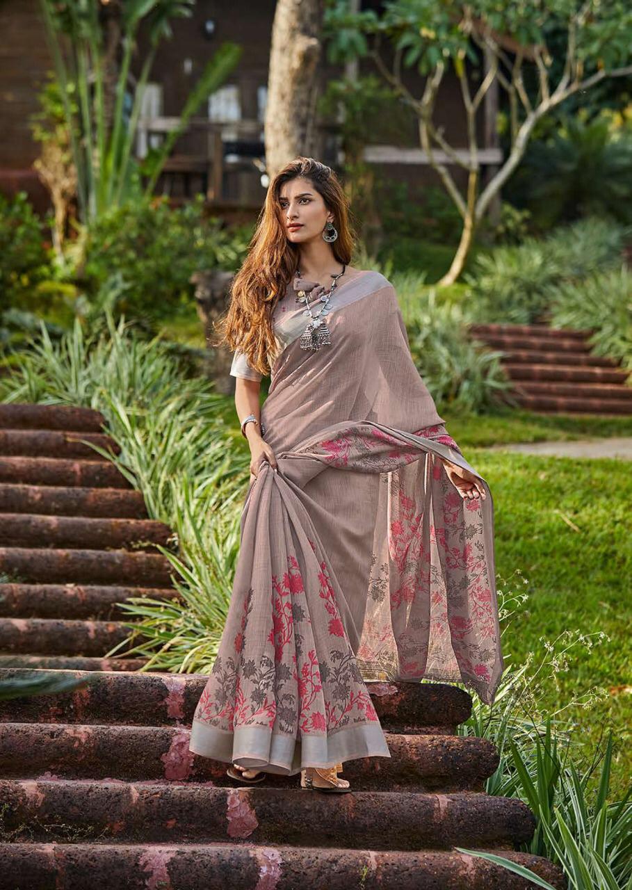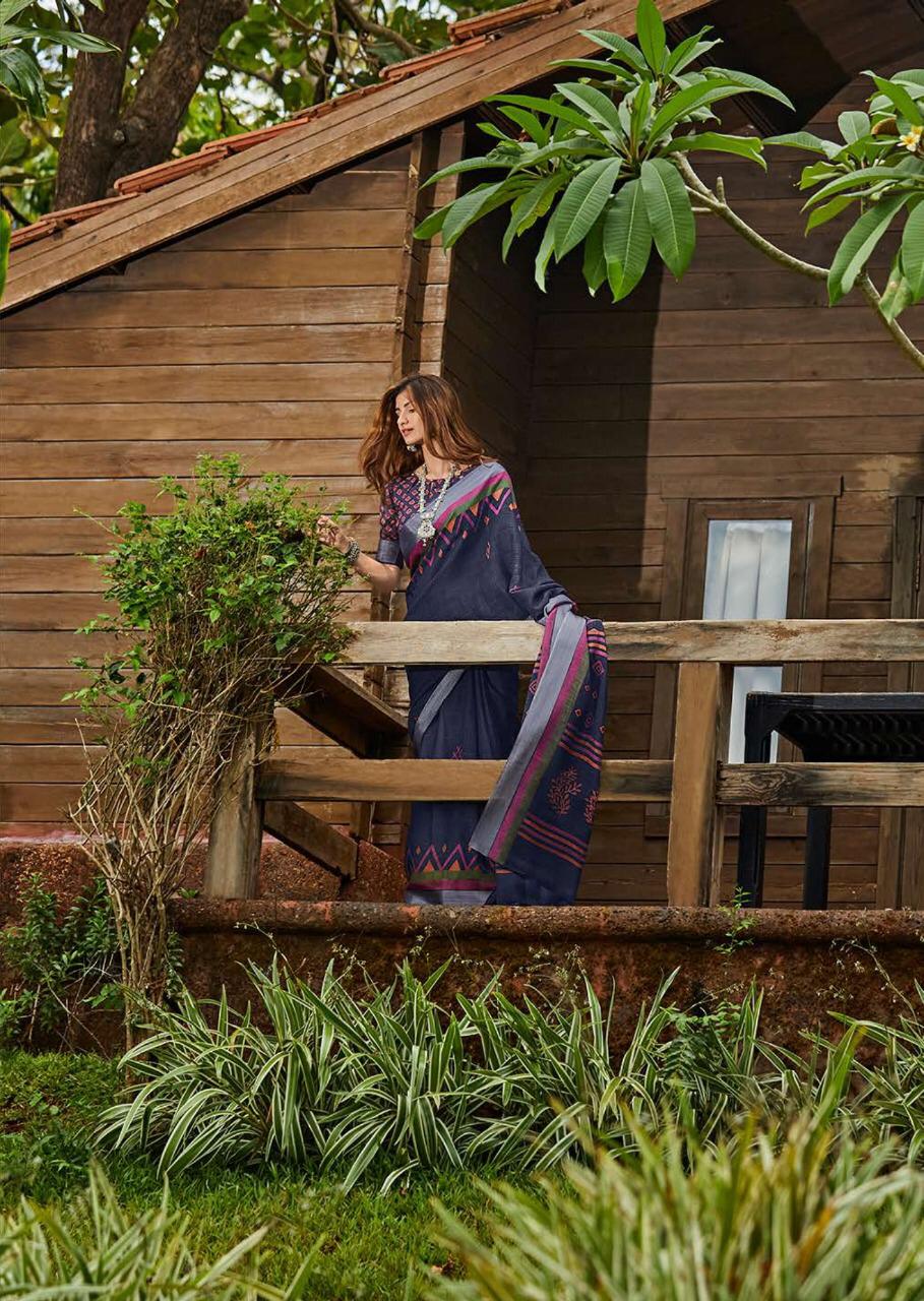 Maahi By Lt Fashion Linen Saree With Zari Border Concept