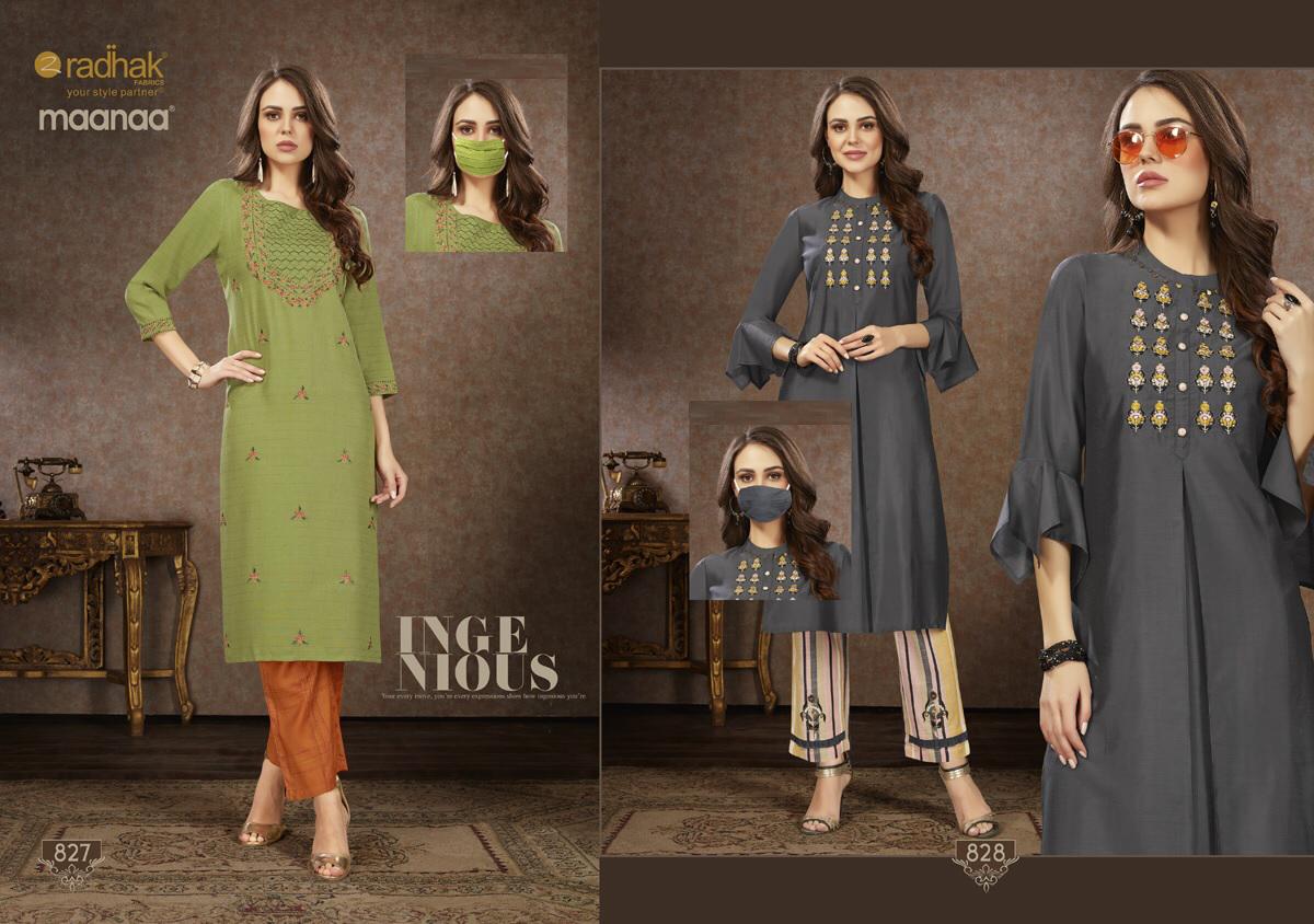 Maanaa Vol 8 By Radhak Rayon Cotton Silk Designer Kurti With Bottom