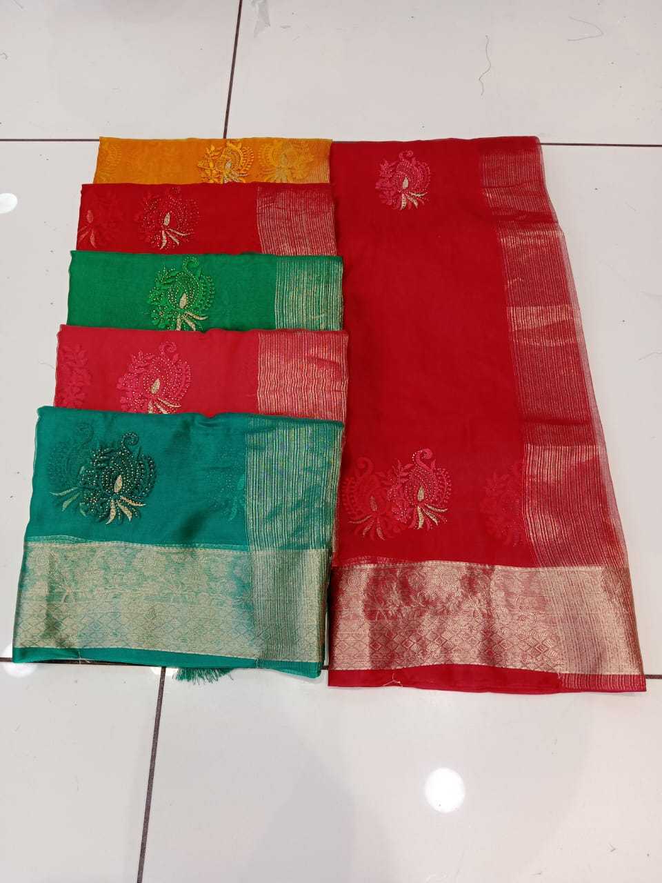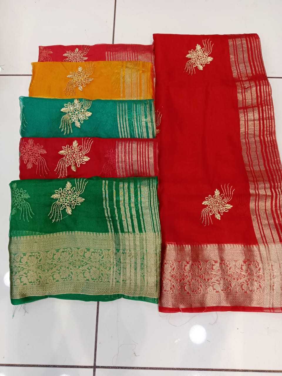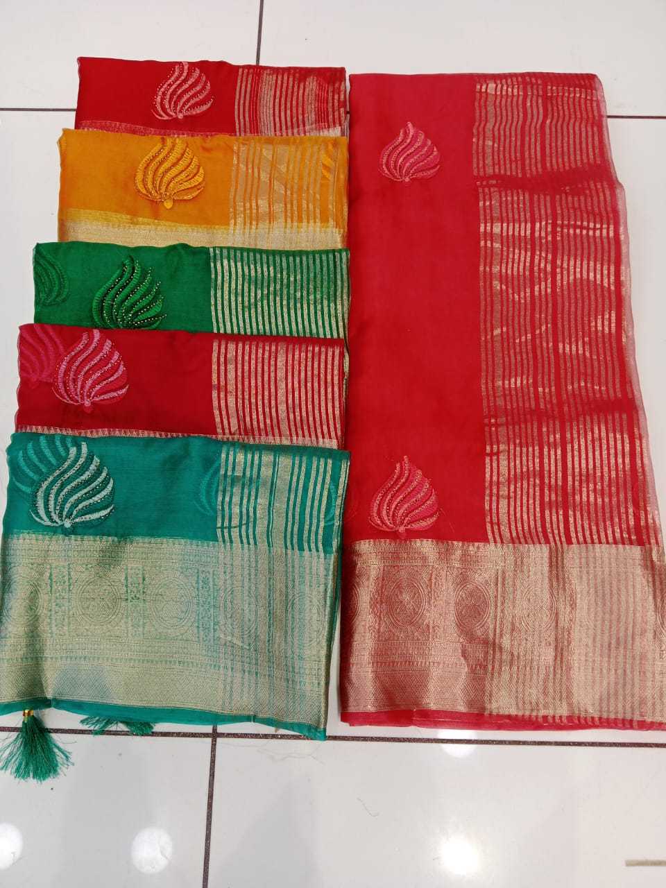maanyata pizza beautiful organza silk saree with swarovski work