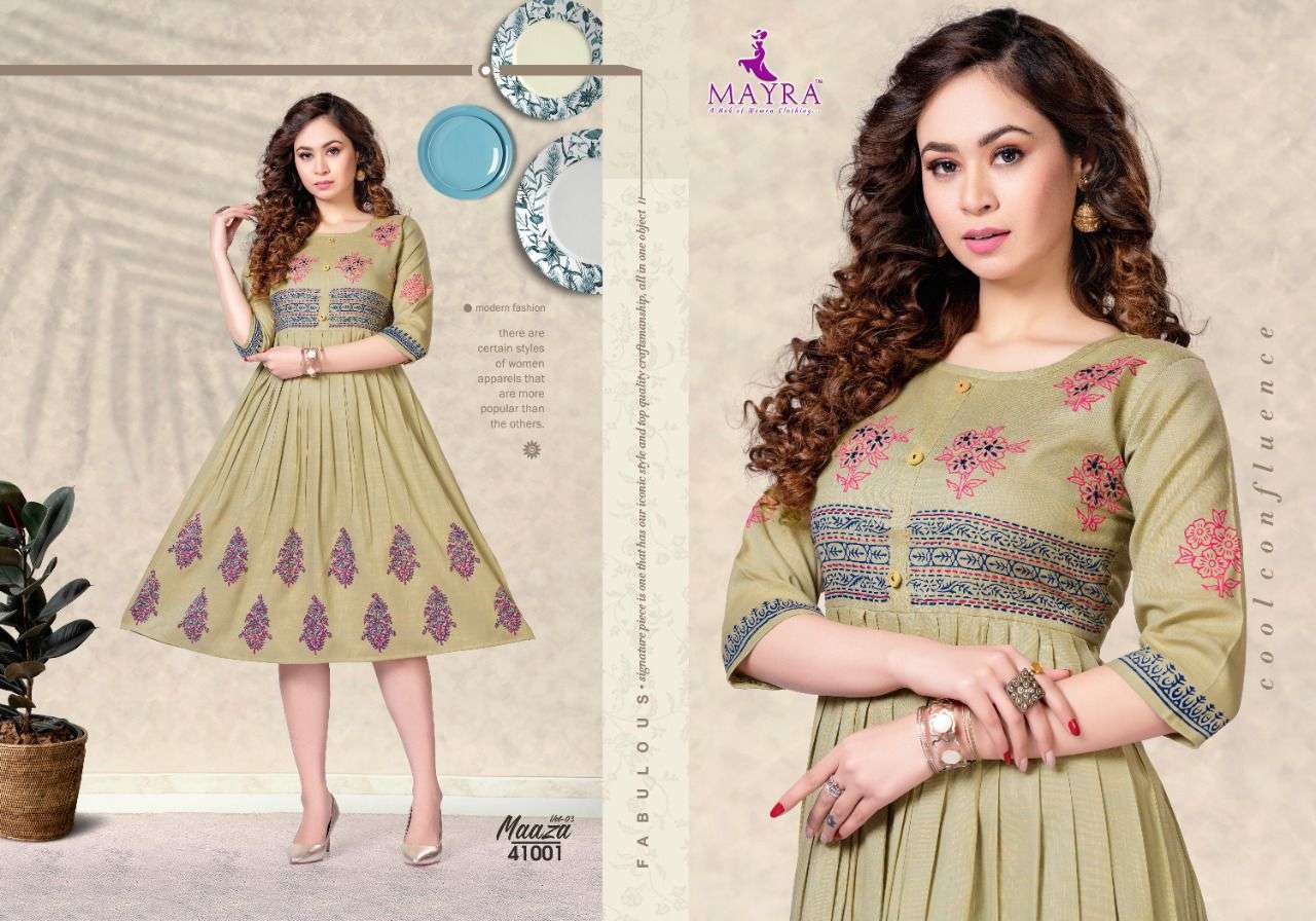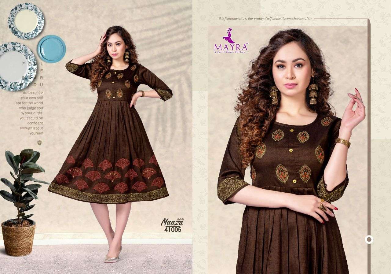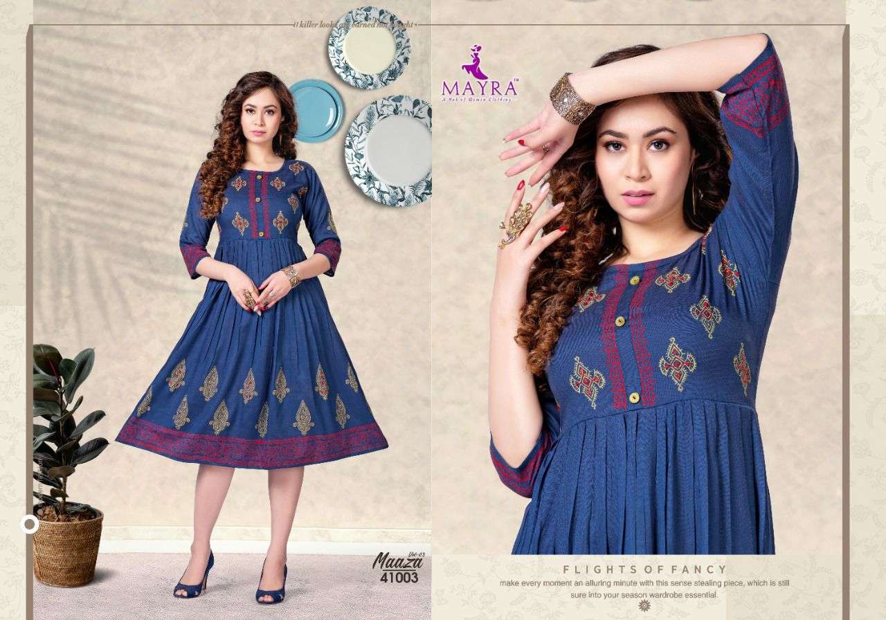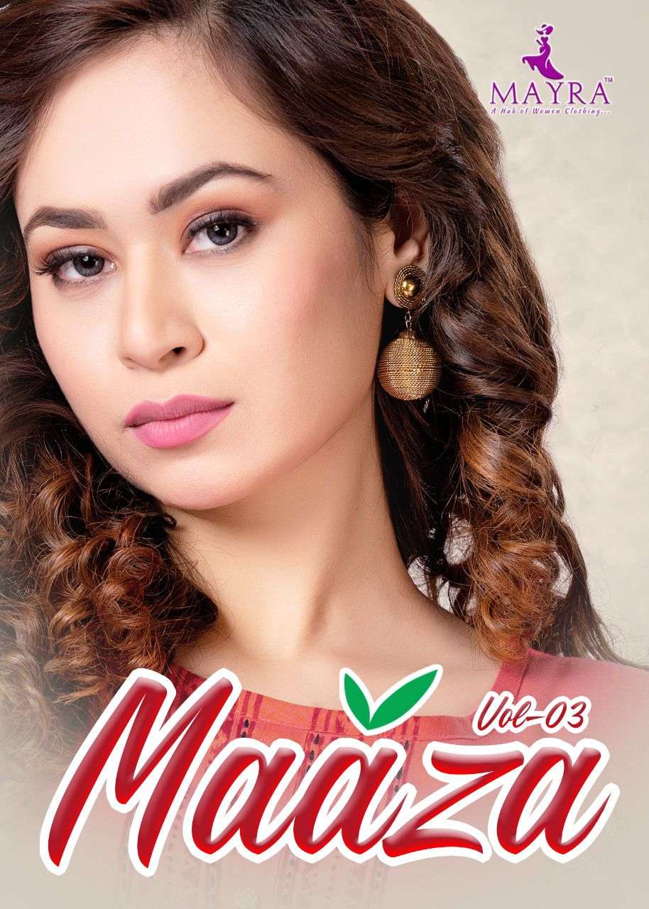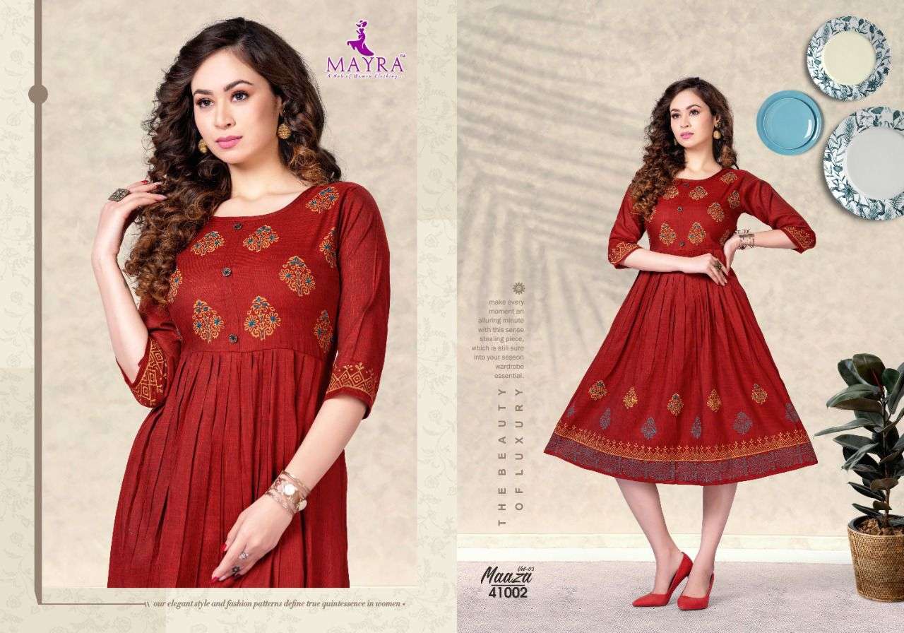 MAAZA Vol-3 BY MAYRA HEAVY RAYON 2 TON WITH Hand work and block and screen work KURTI CATALOG WHOLESALER BEST RATE