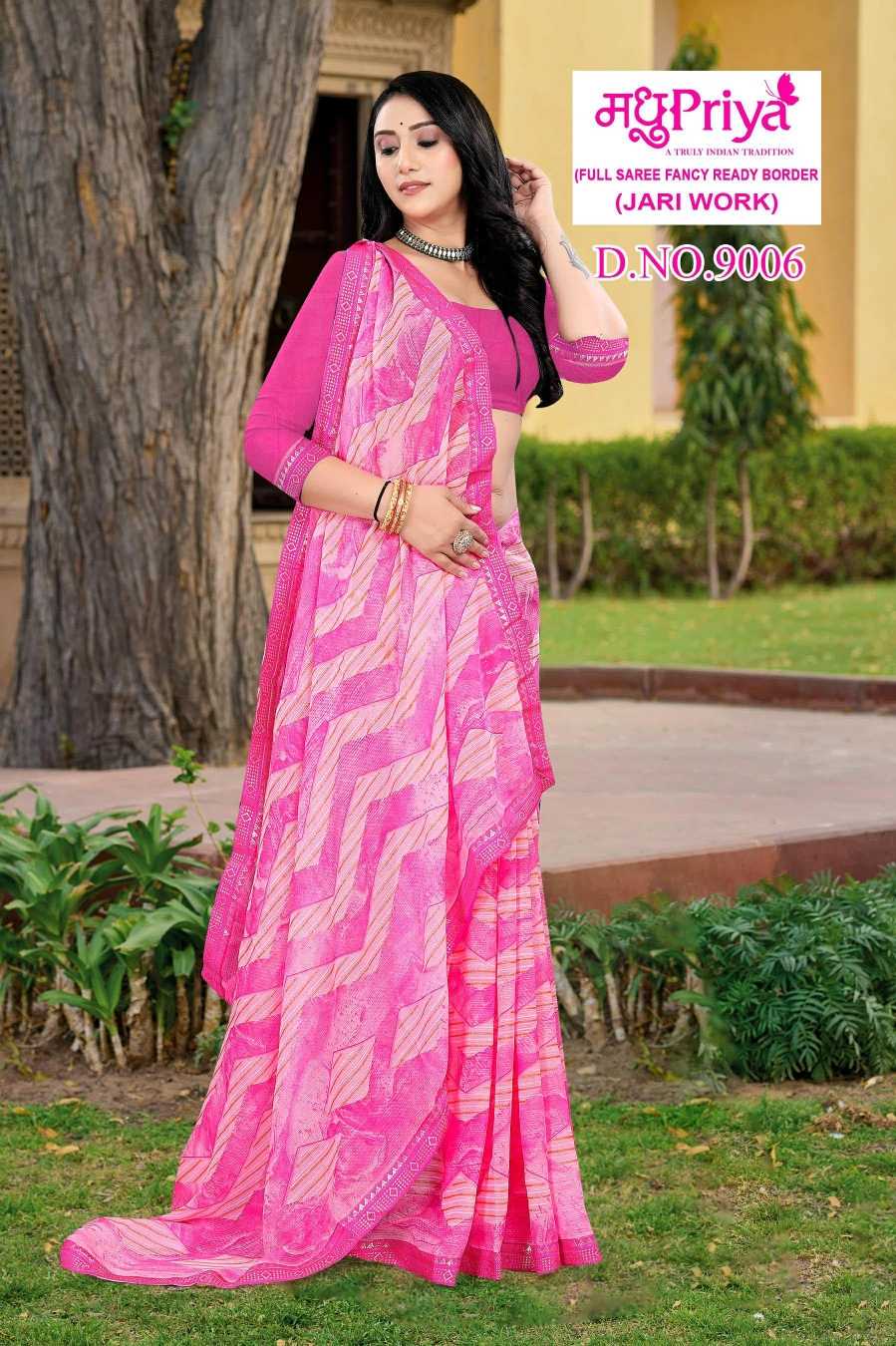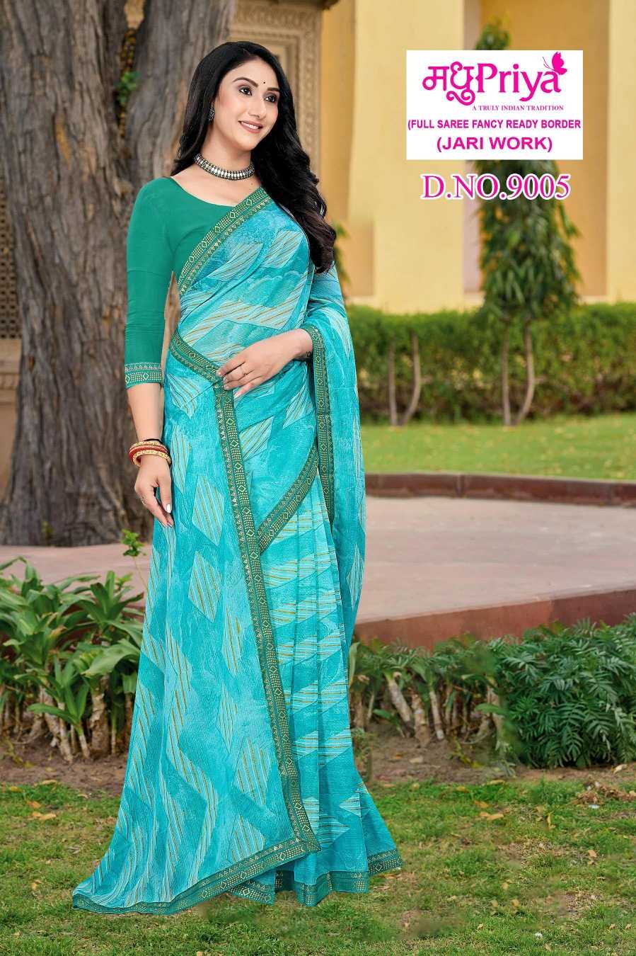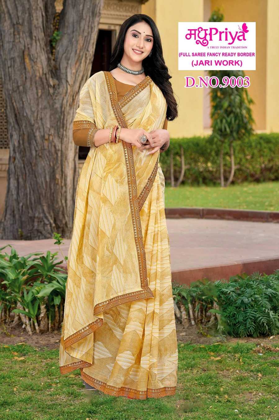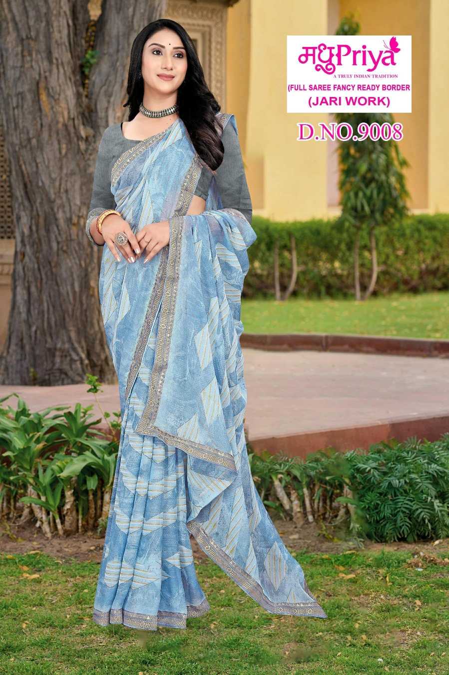 madhupriya amazia 9 latest fancy print with jari work saree wholesaler
