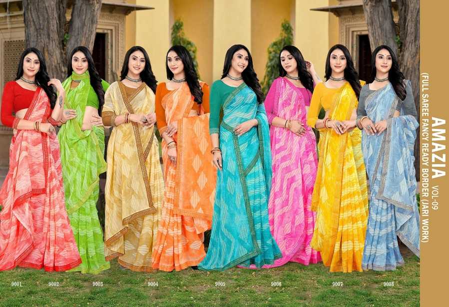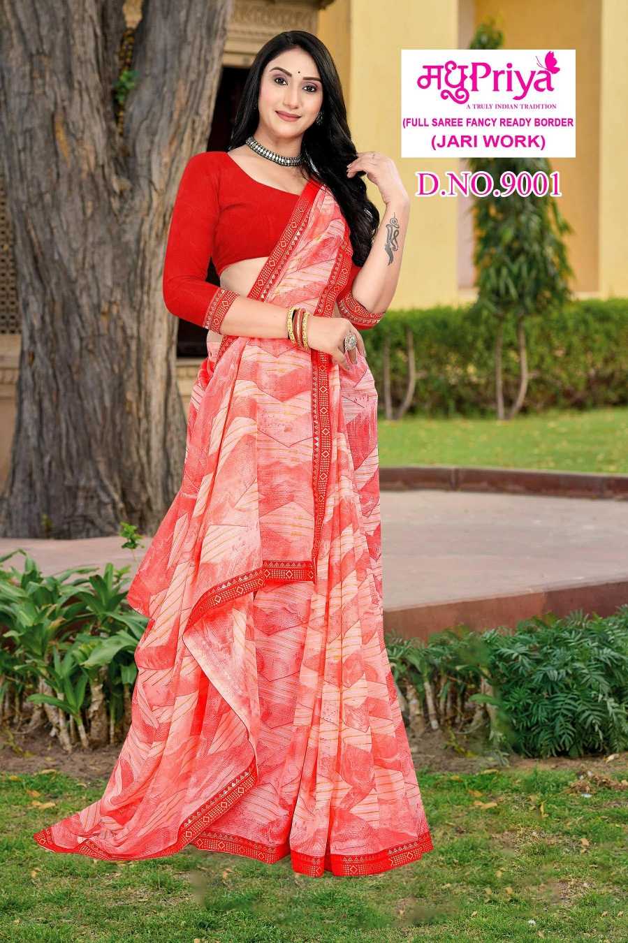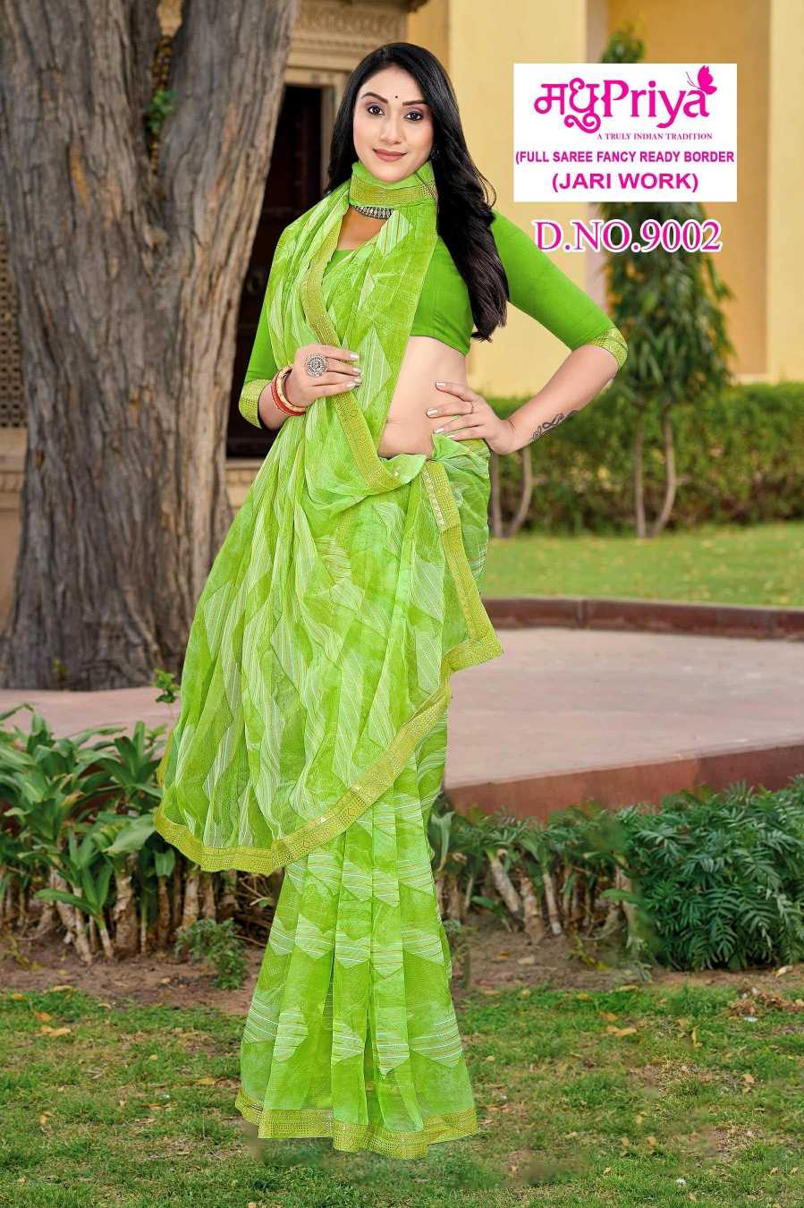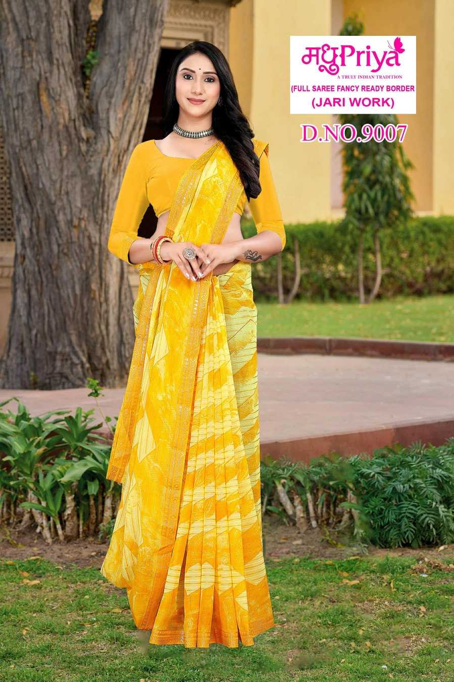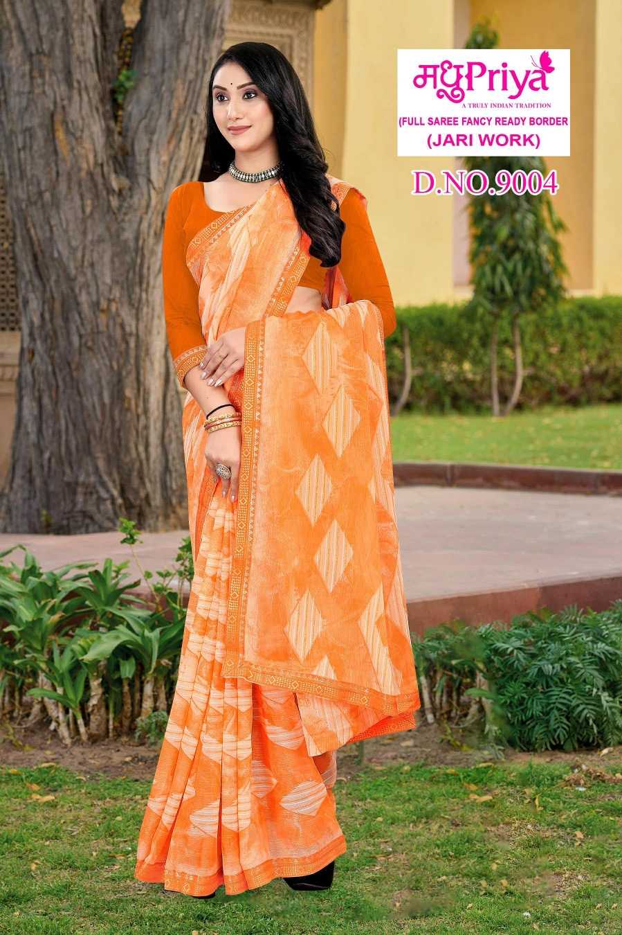 madhupriya amazia 9 latest fancy print with jari work saree wholesaler