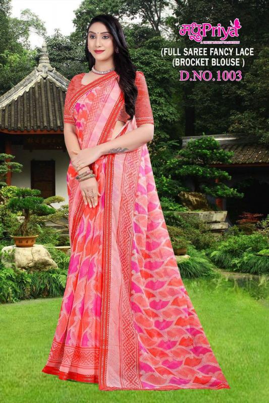 madhupriya chocolate vol 39 unique style print chiffon saree