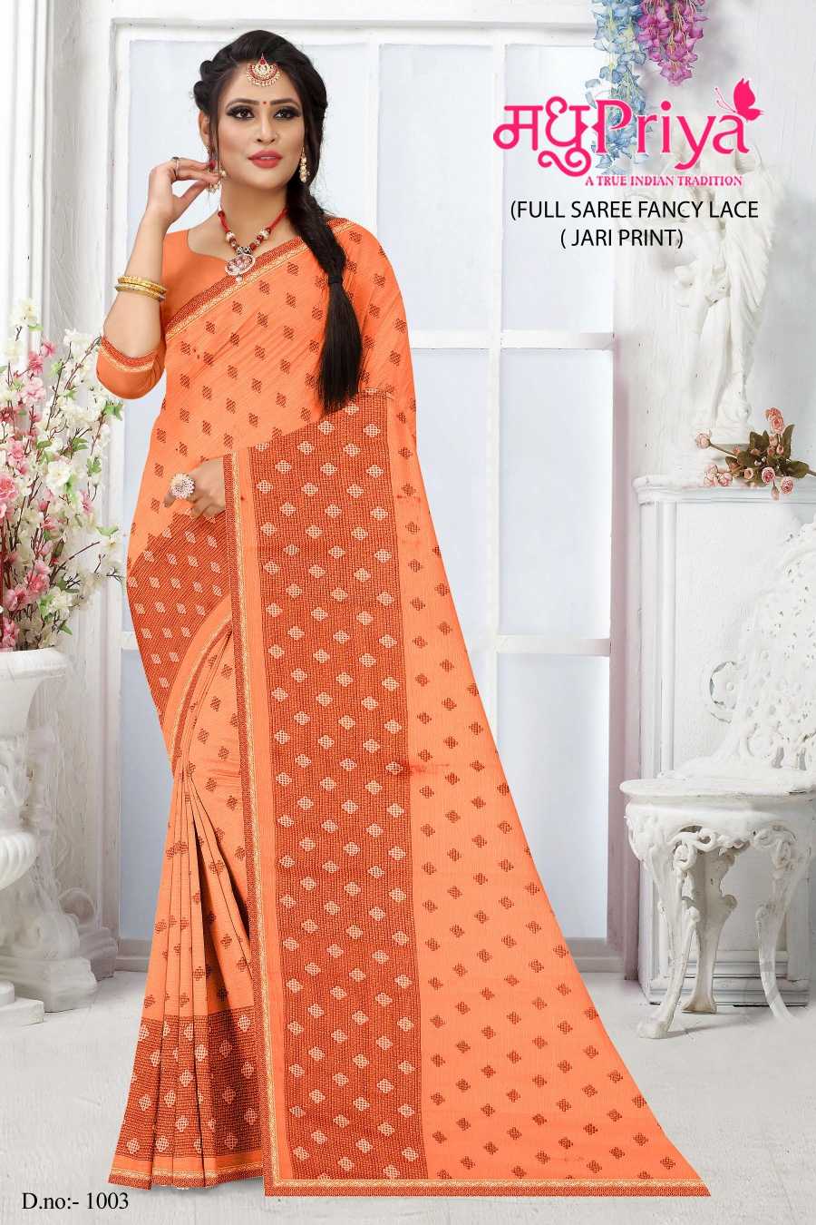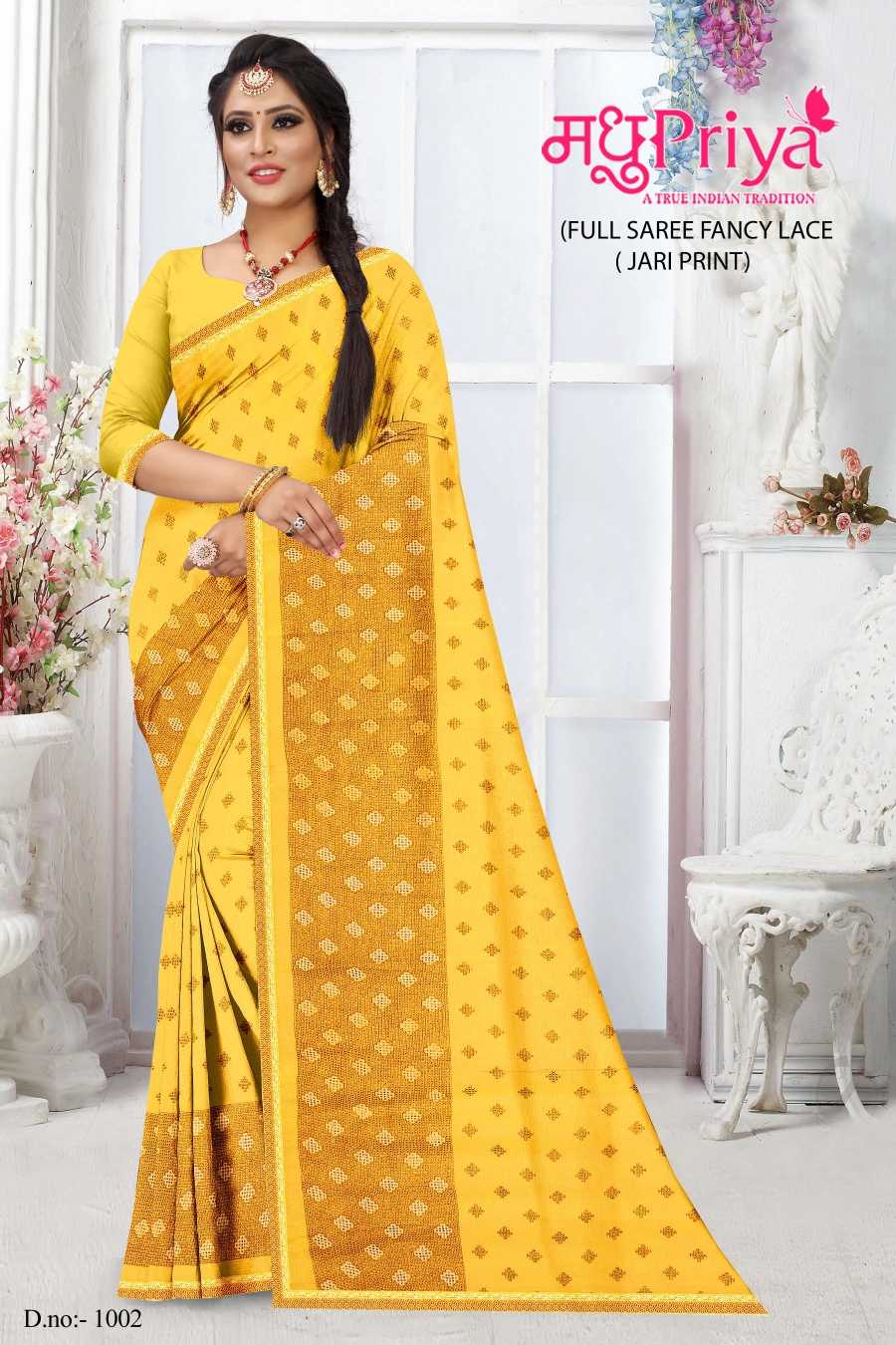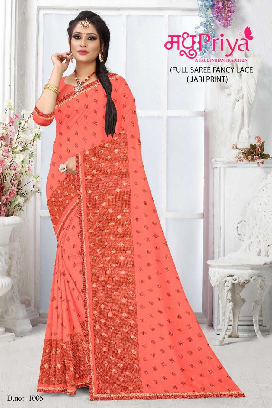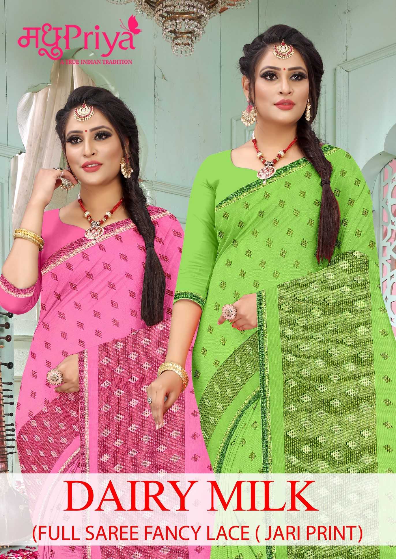 madhupriya dairy milk chiffon jari print sarees at reasonable rate