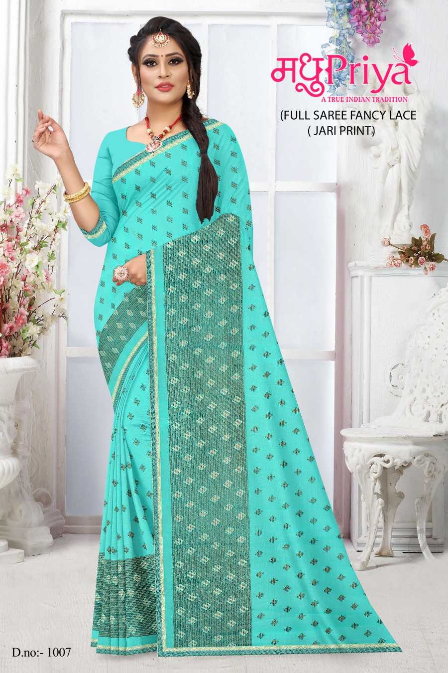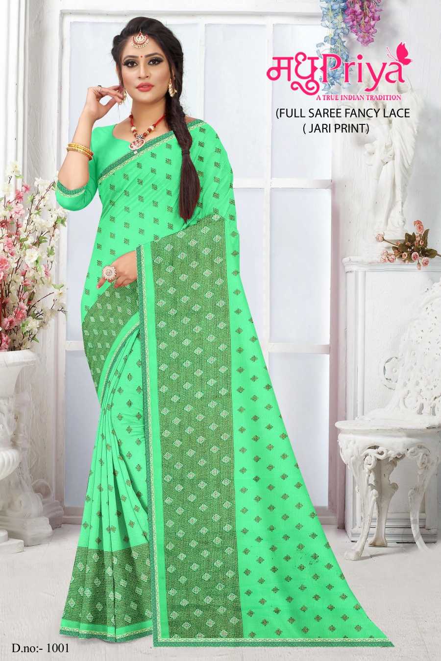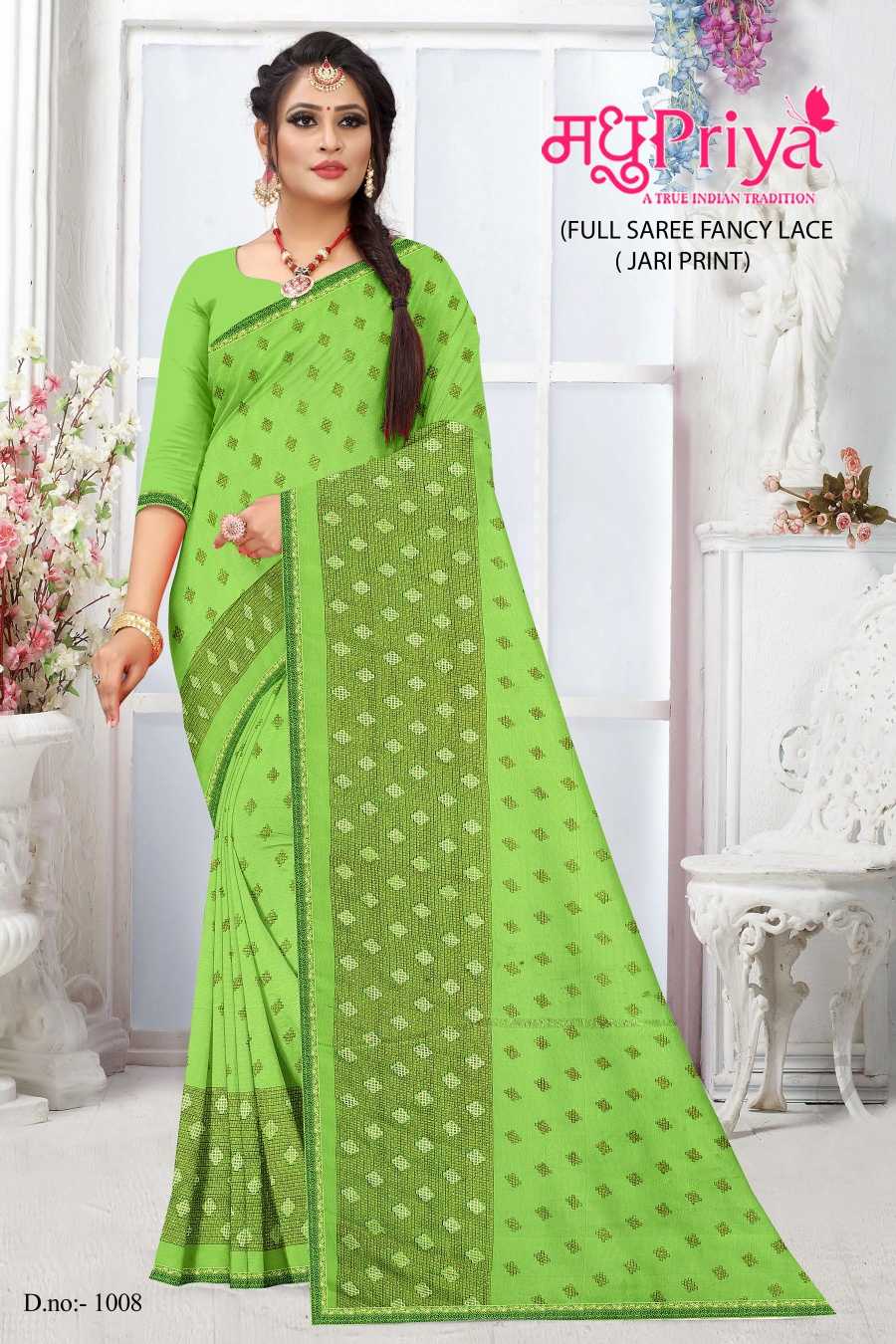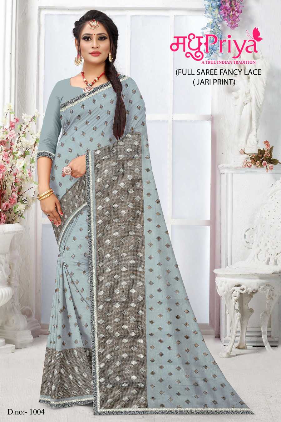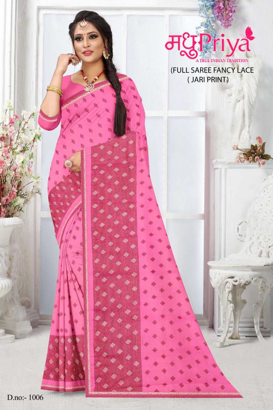 madhupriya dairy milk chiffon jari print sarees at reasonable rate