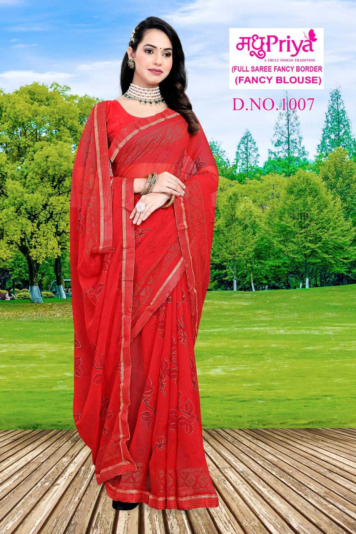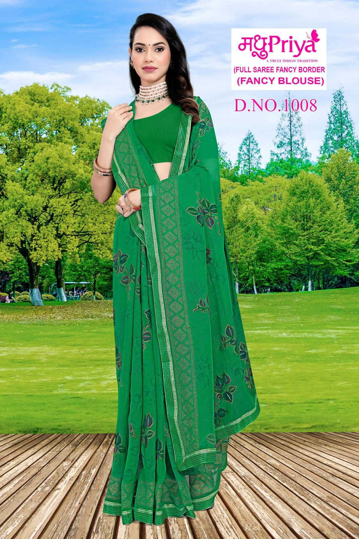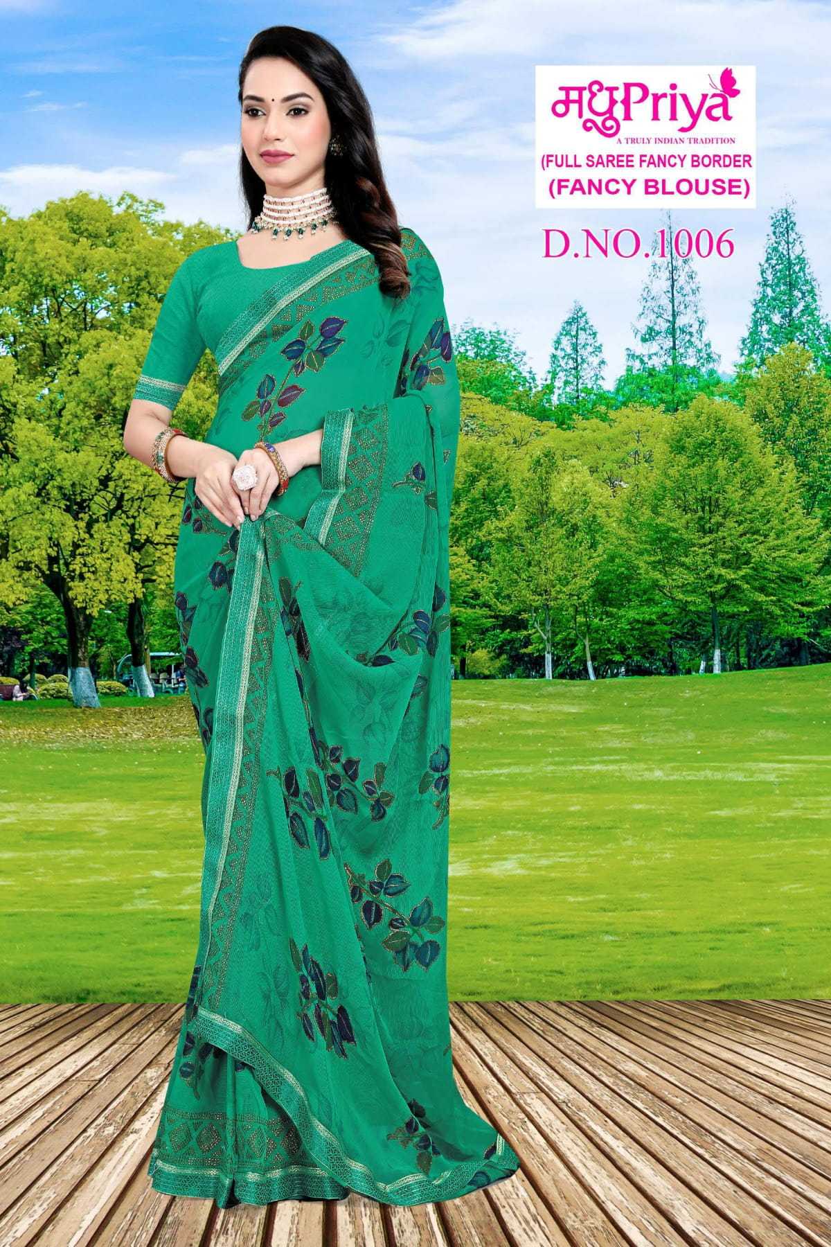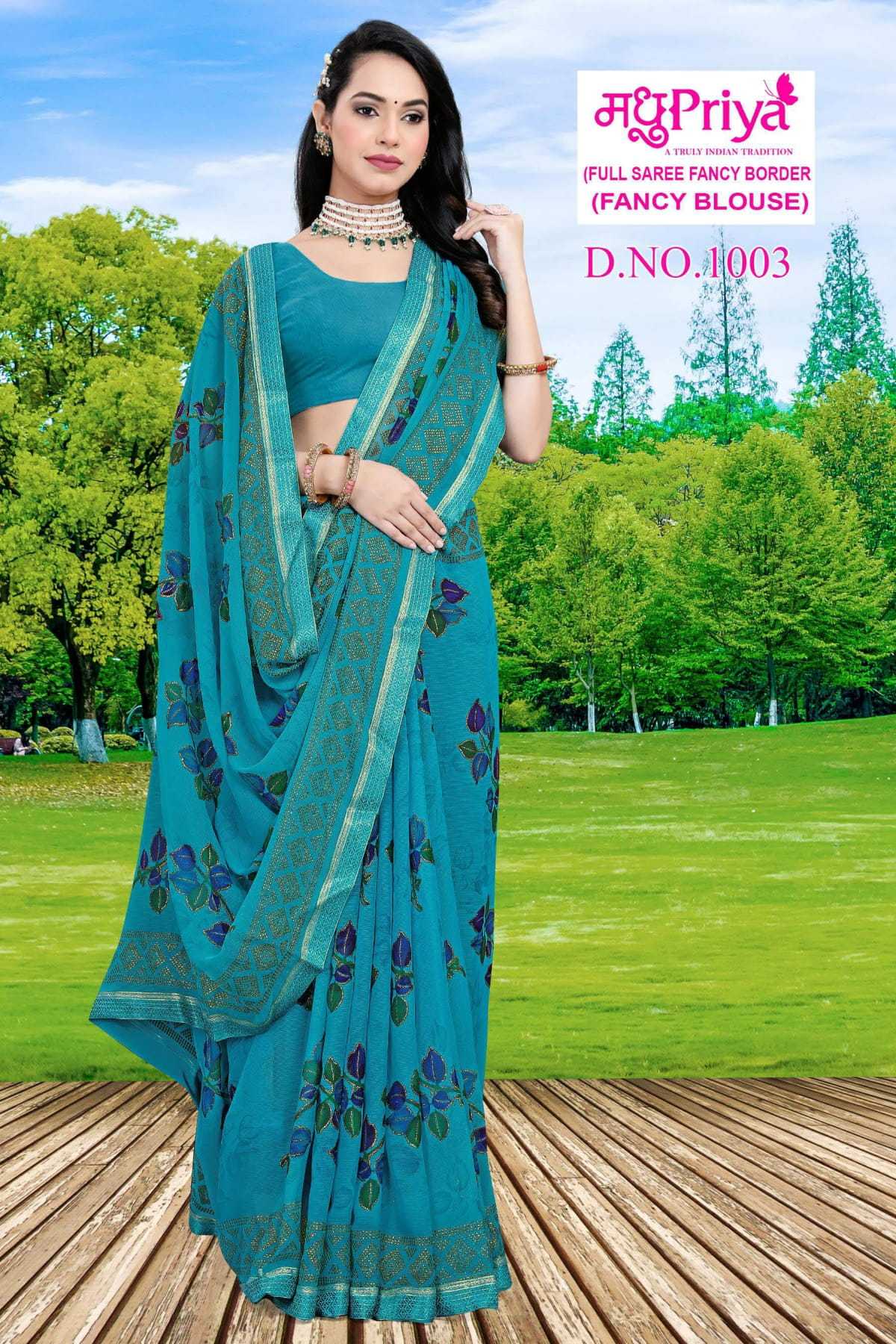 madhupriya dairy milk vol 15 fancy print jari work unique saree with blouse