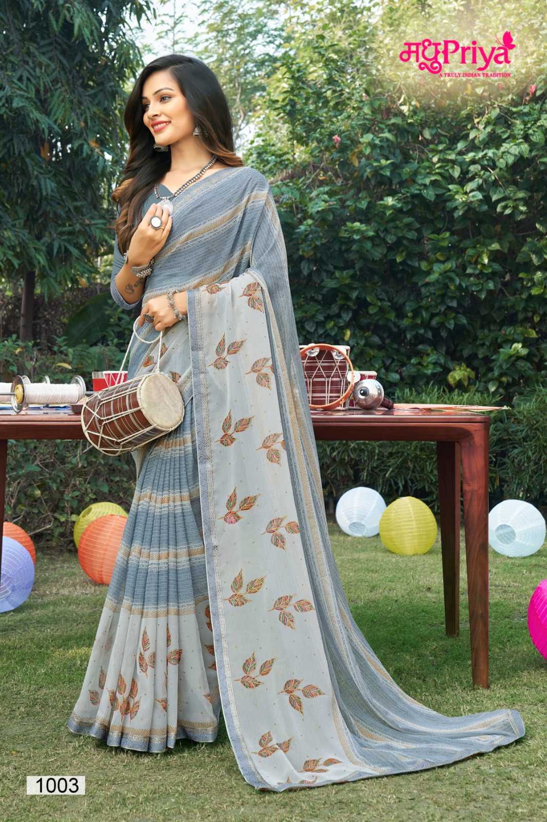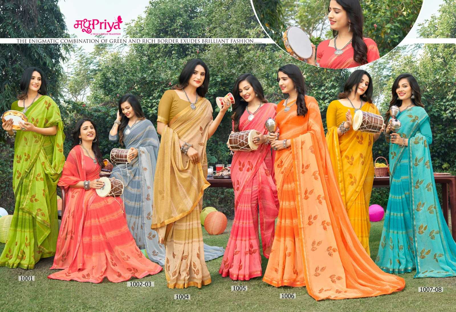 madhupriya dairy milk vol 5 1001-1008 chiffon fancy sarees