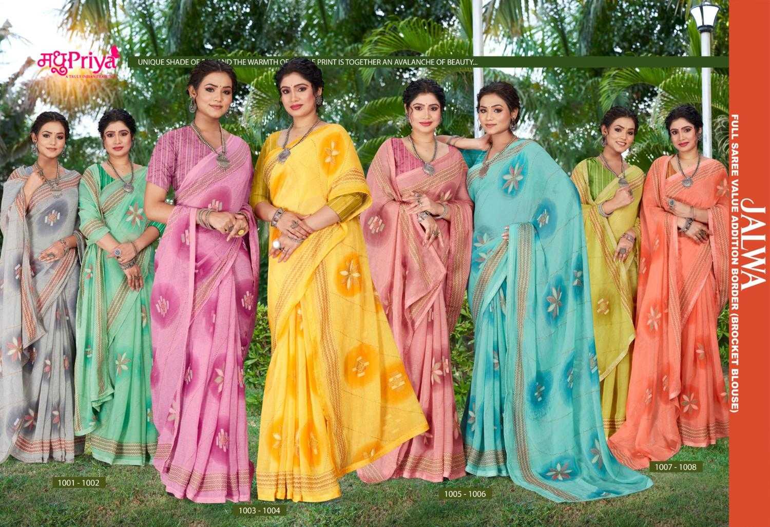 madhupriya jalwa attractive design simmar fancy printed saree exports