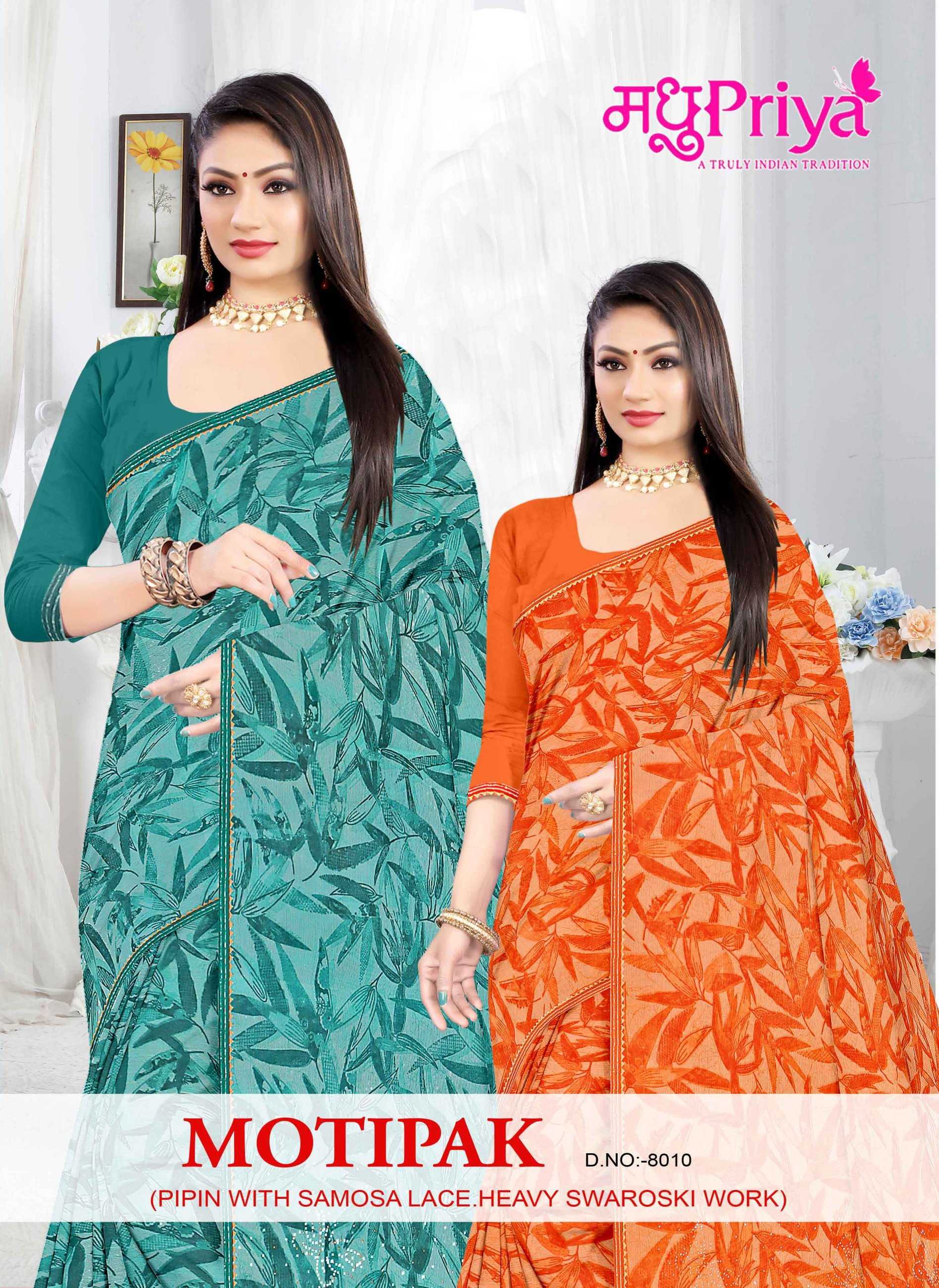 madhupriya motipak 8010 casual fancy chiffon sarees collection