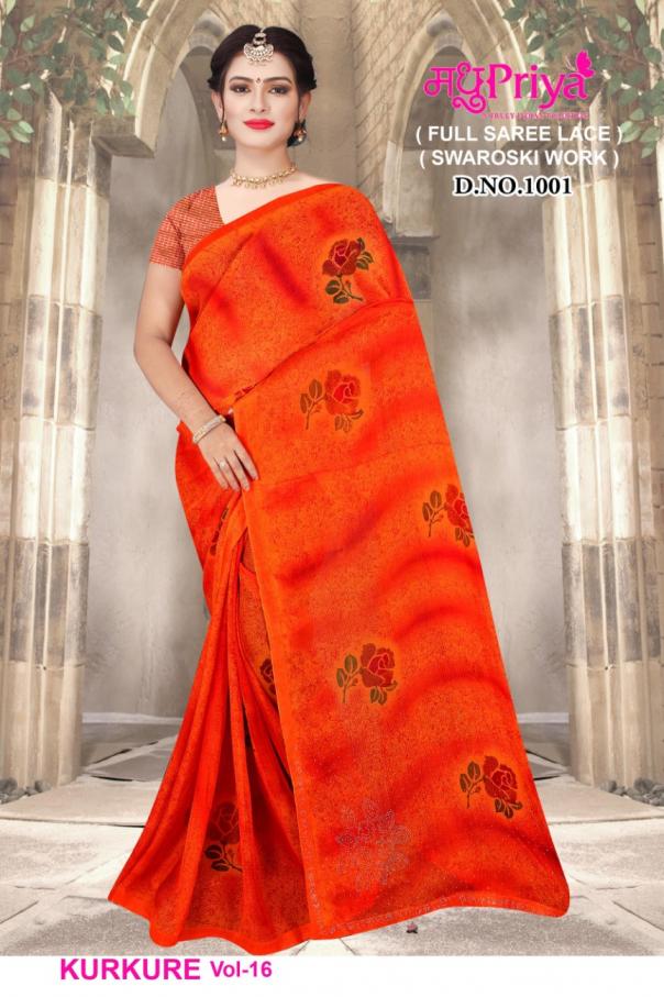 madhupriya present kurkure vol 16 fancy print elegant look saree