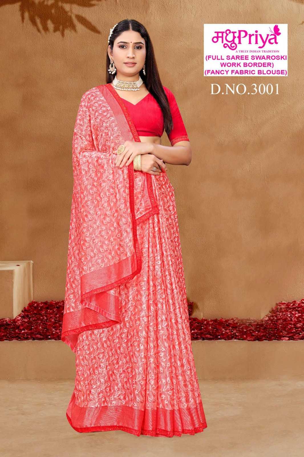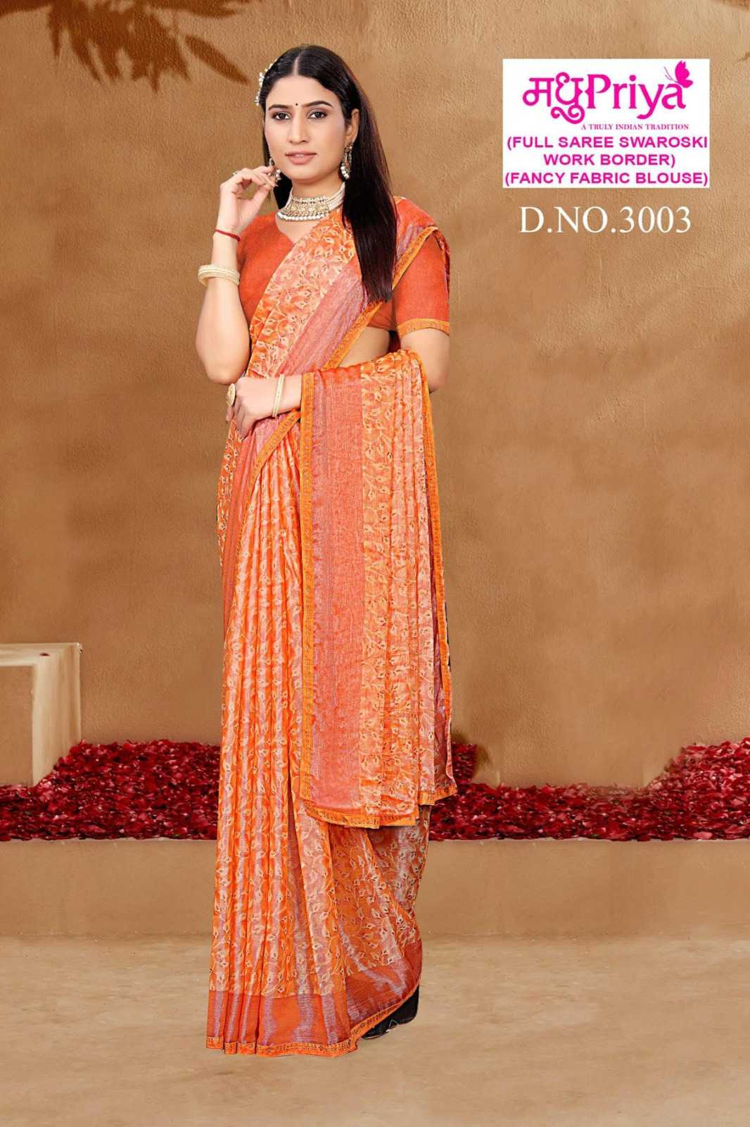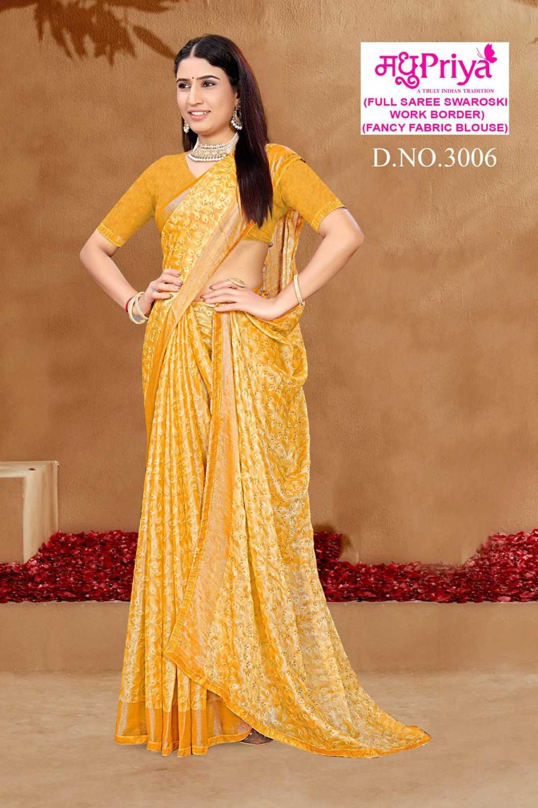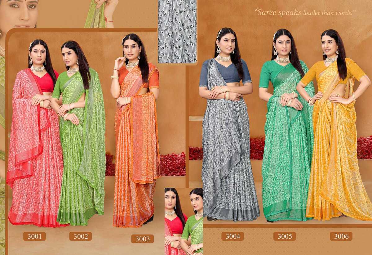 madhupriya ronak vol 3 stylish 3001- 3006 brasso saree wholesaler