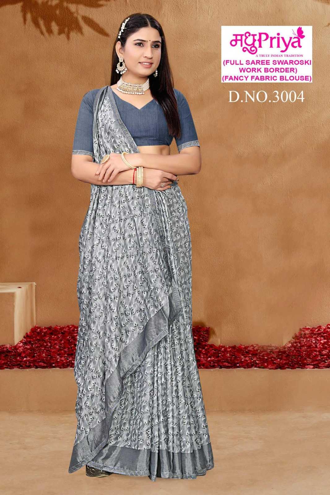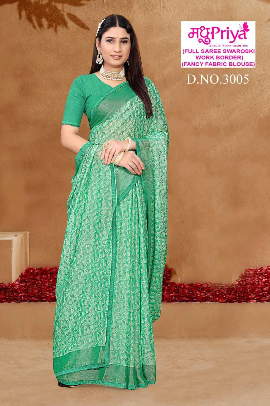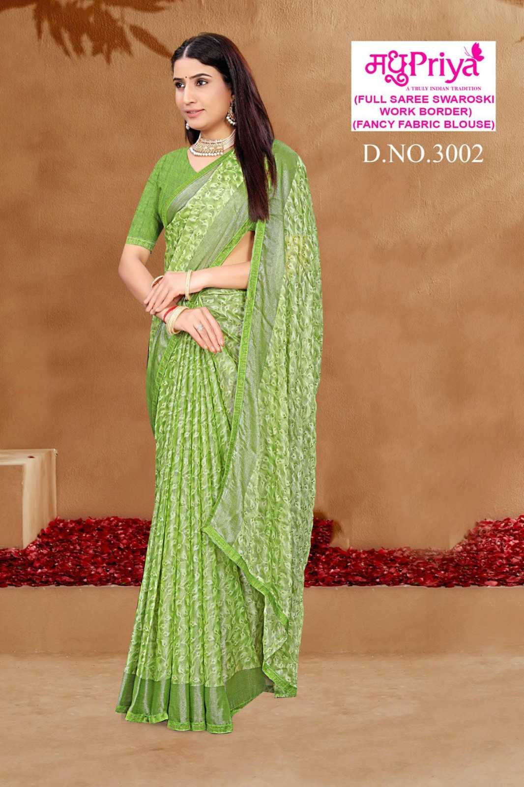 madhupriya ronak vol 3 stylish 3001- 3006 brasso saree wholesaler