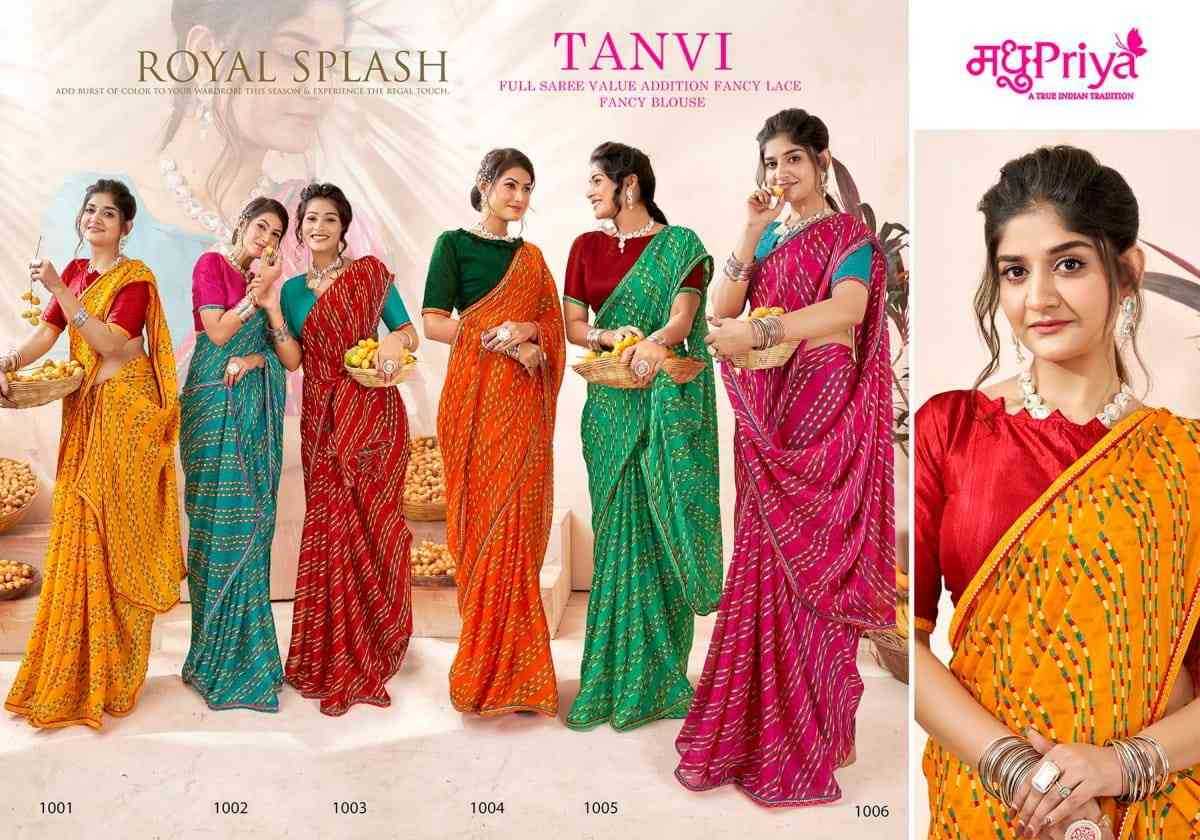 madhupriya tanvi chiffon with lehriya print stylish saree supplier