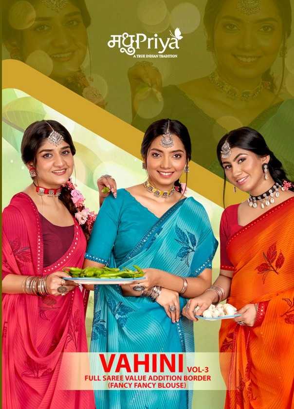 madhupriya vahini fancy weightless pattren colour addition saree exports