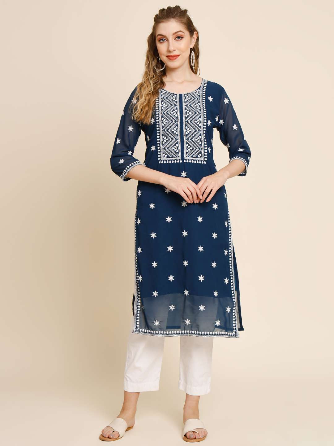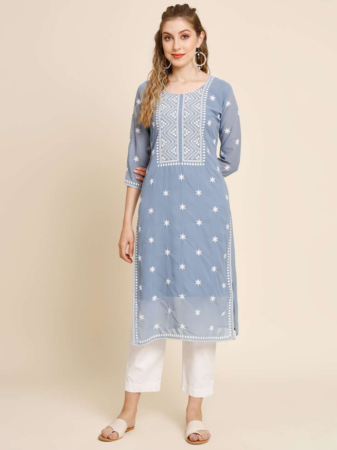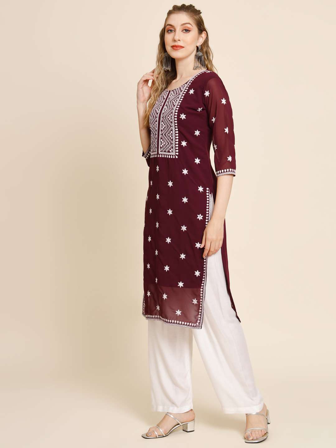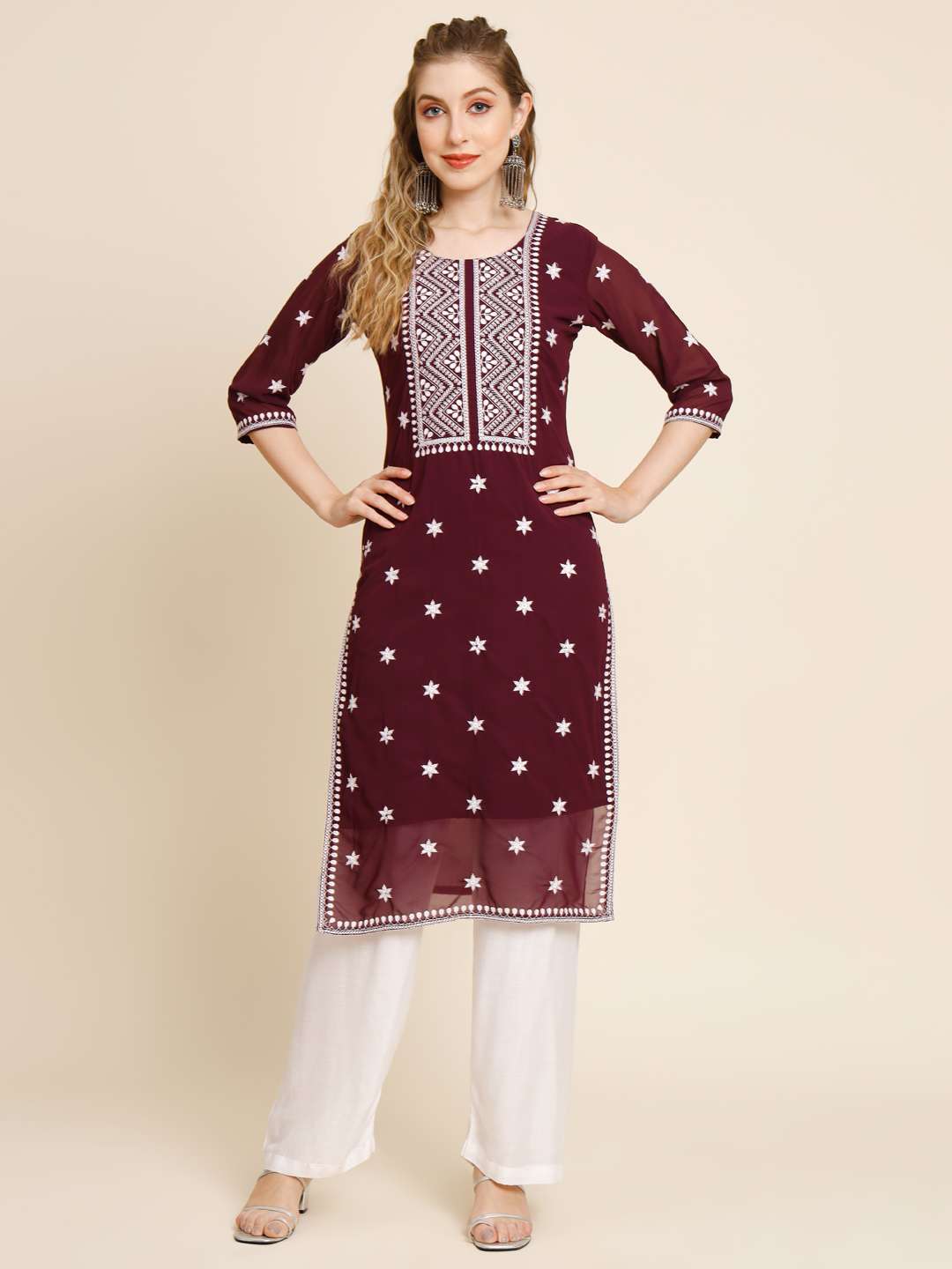 Maggi (Soft Georgette Kurta with Embroidery Work - Straight Shape - Three Quarter Sleeves - Round Neck) |