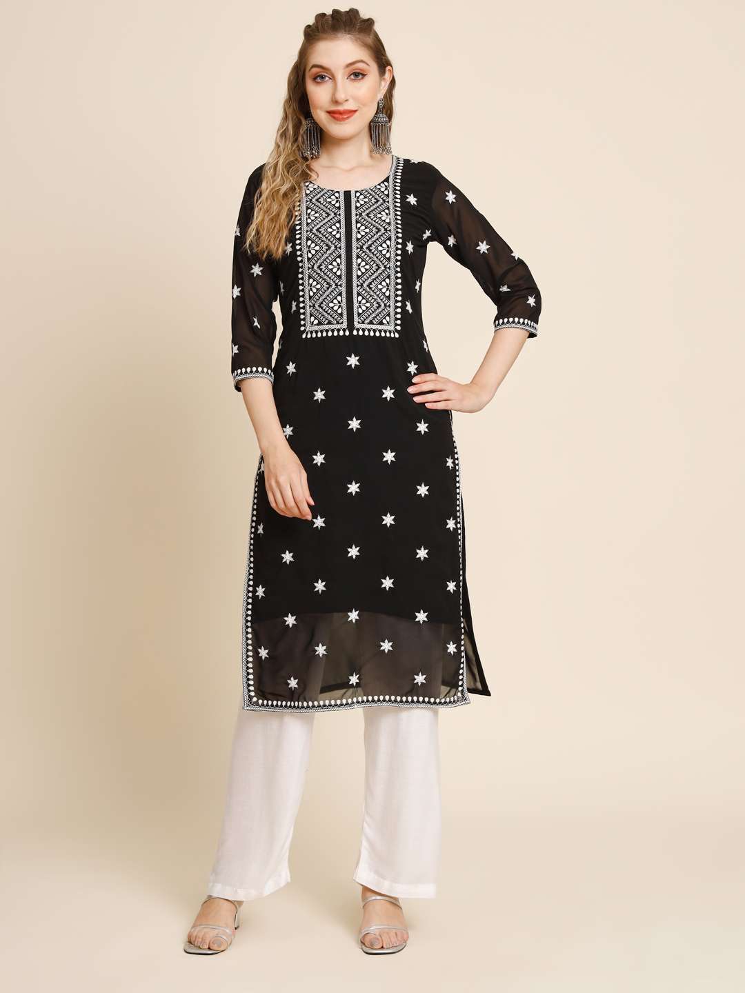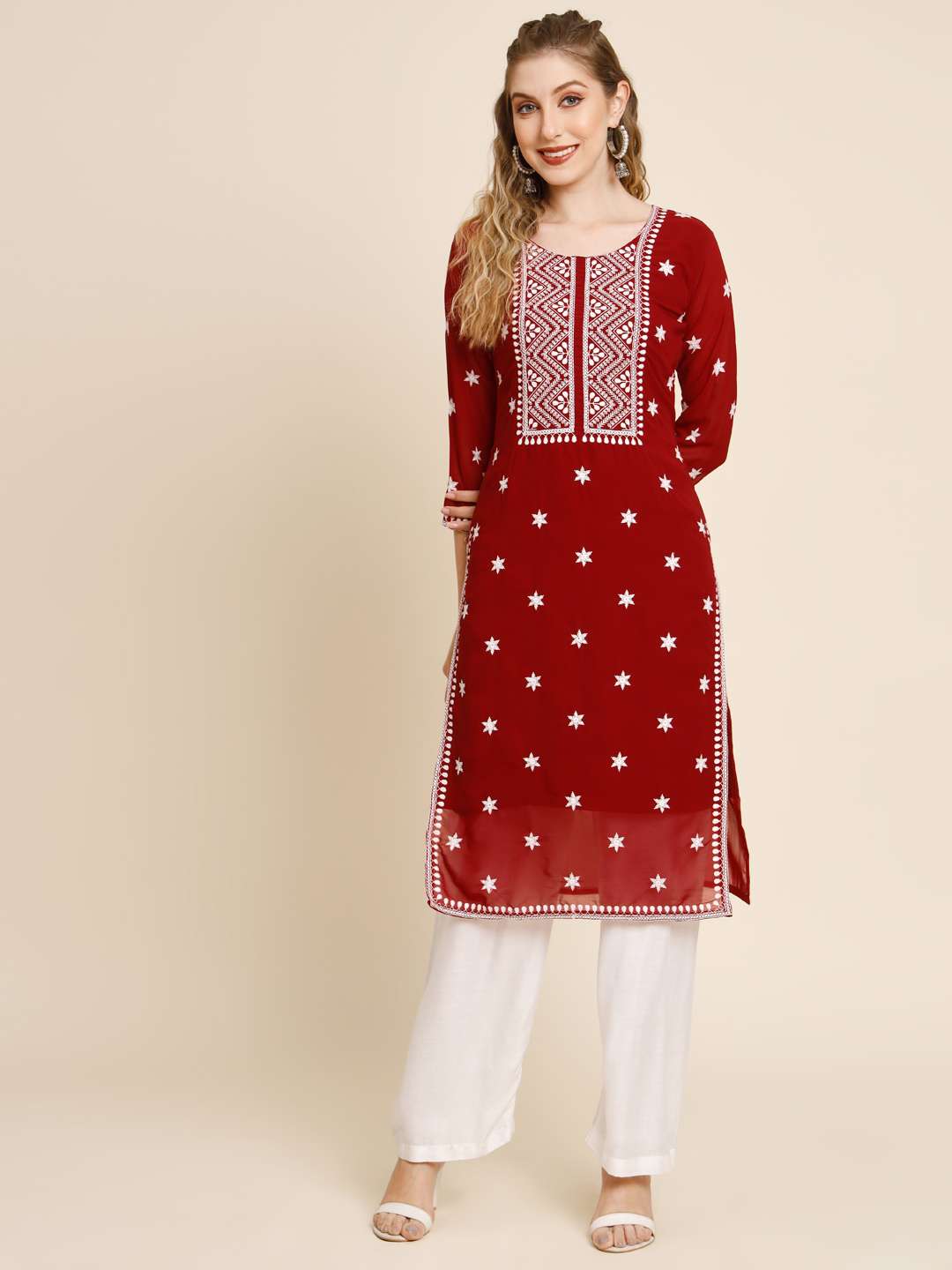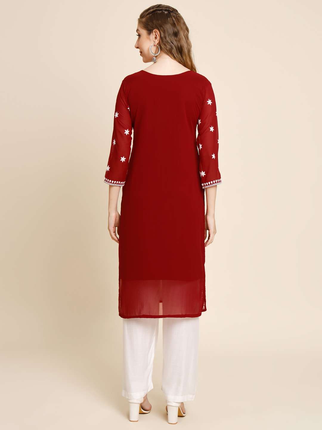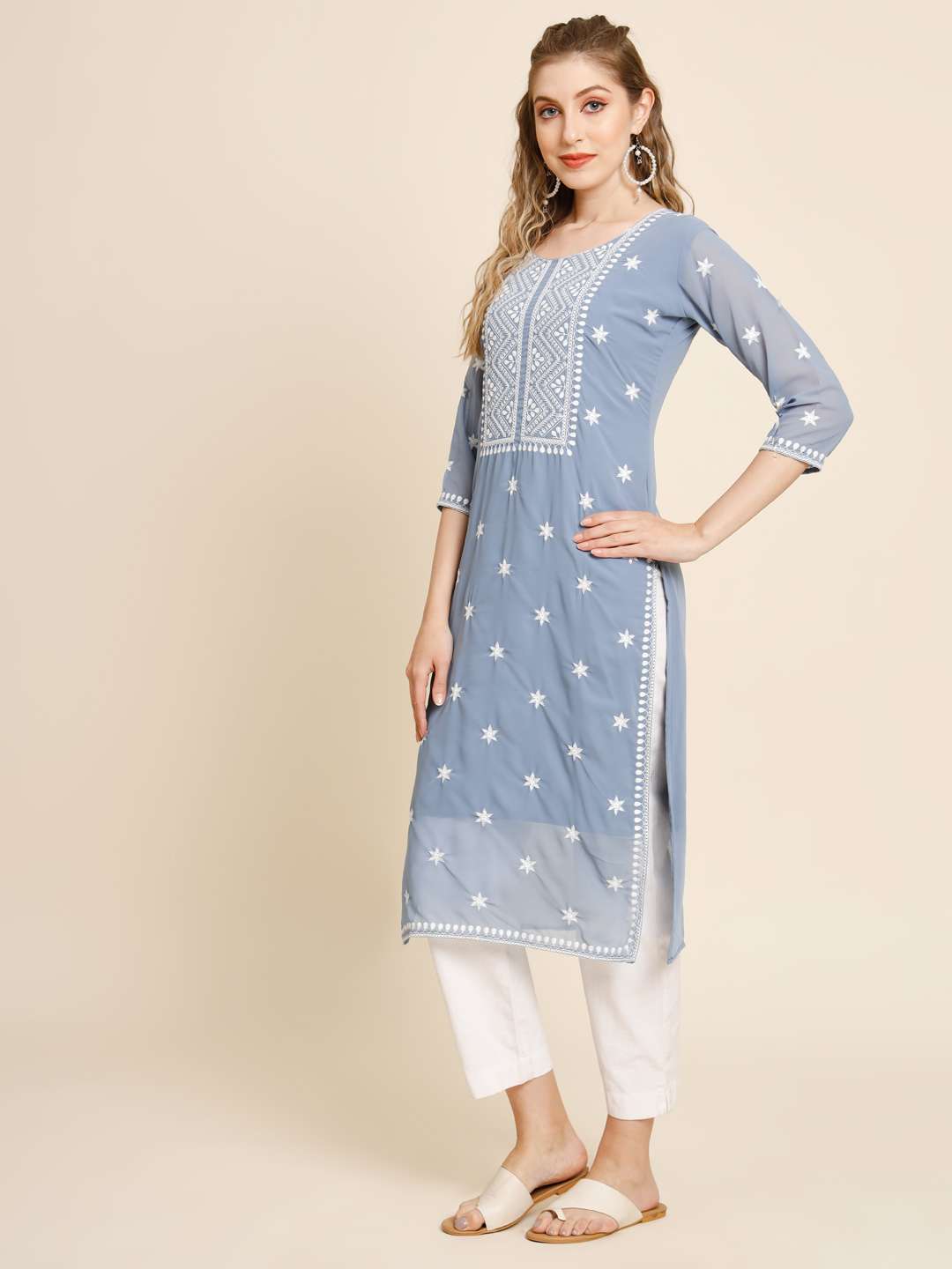 Maggi (Soft Georgette Kurta with Embroidery Work - Straight Shape - Three Quarter Sleeves - Round Neck) |