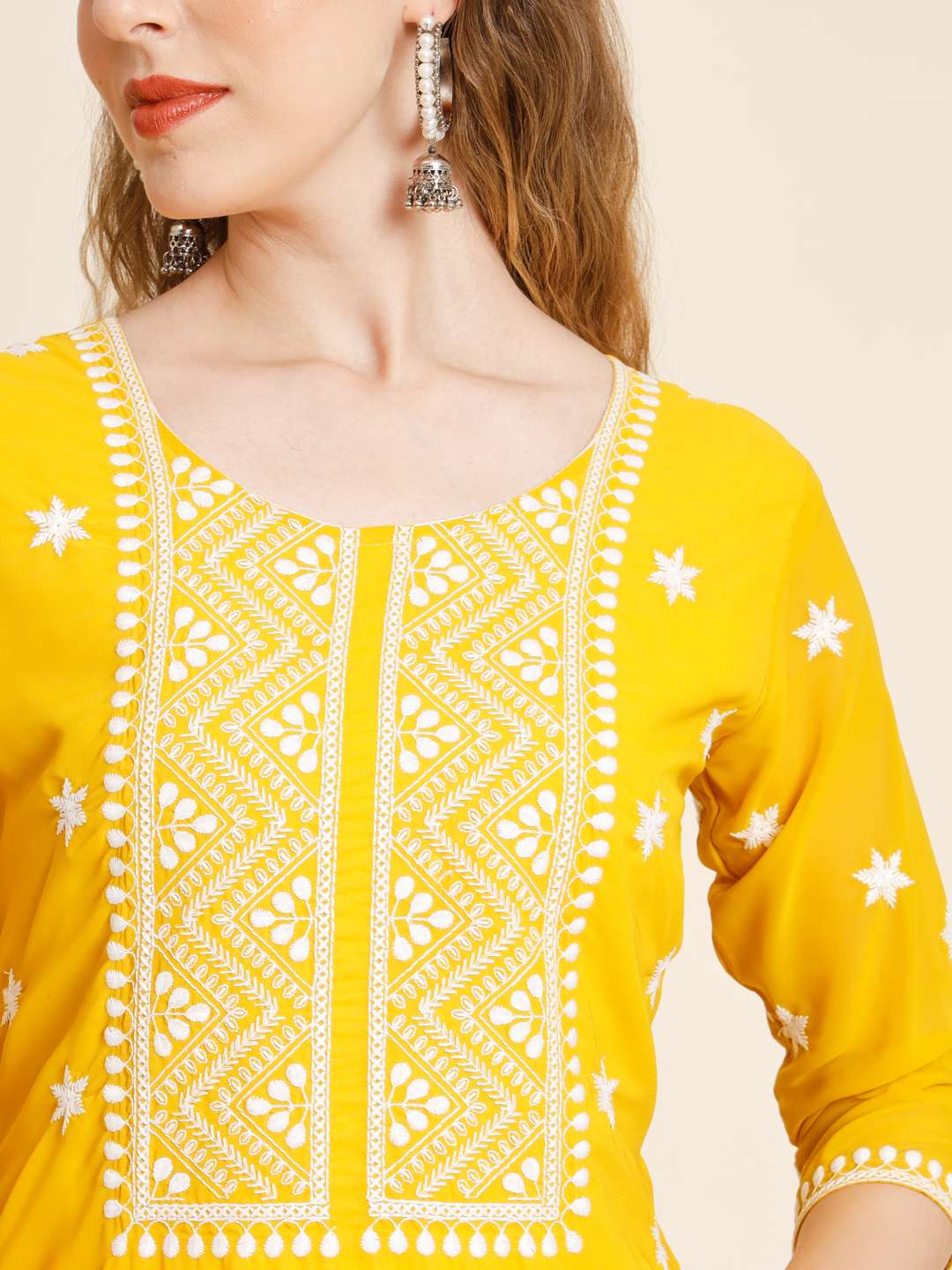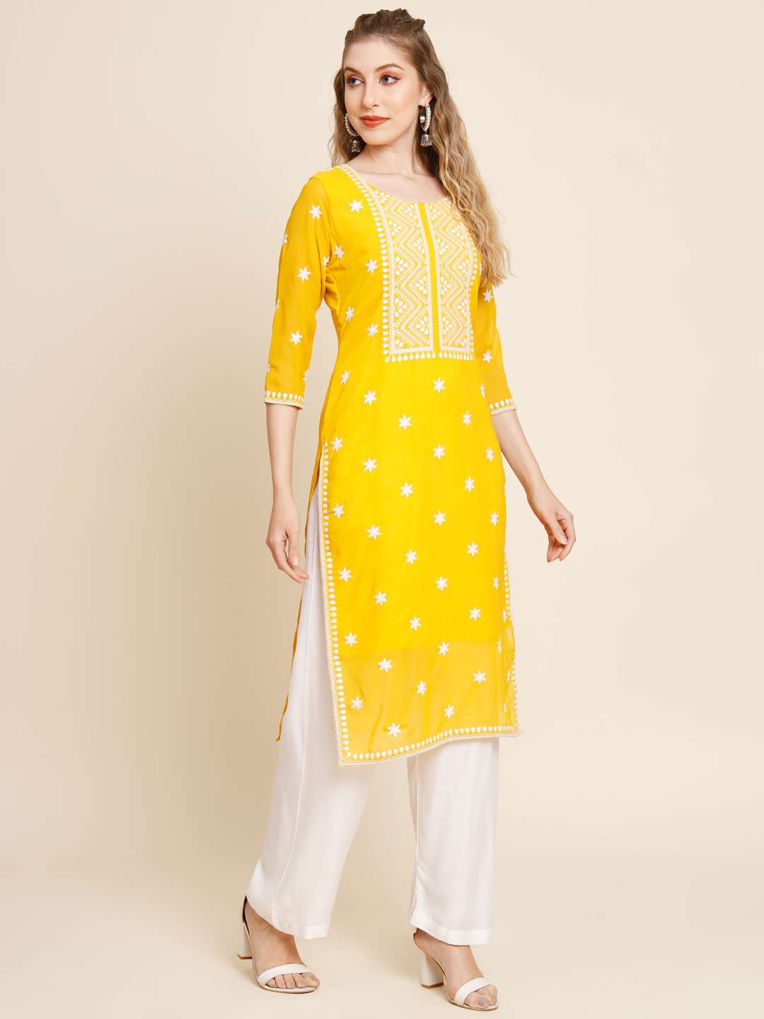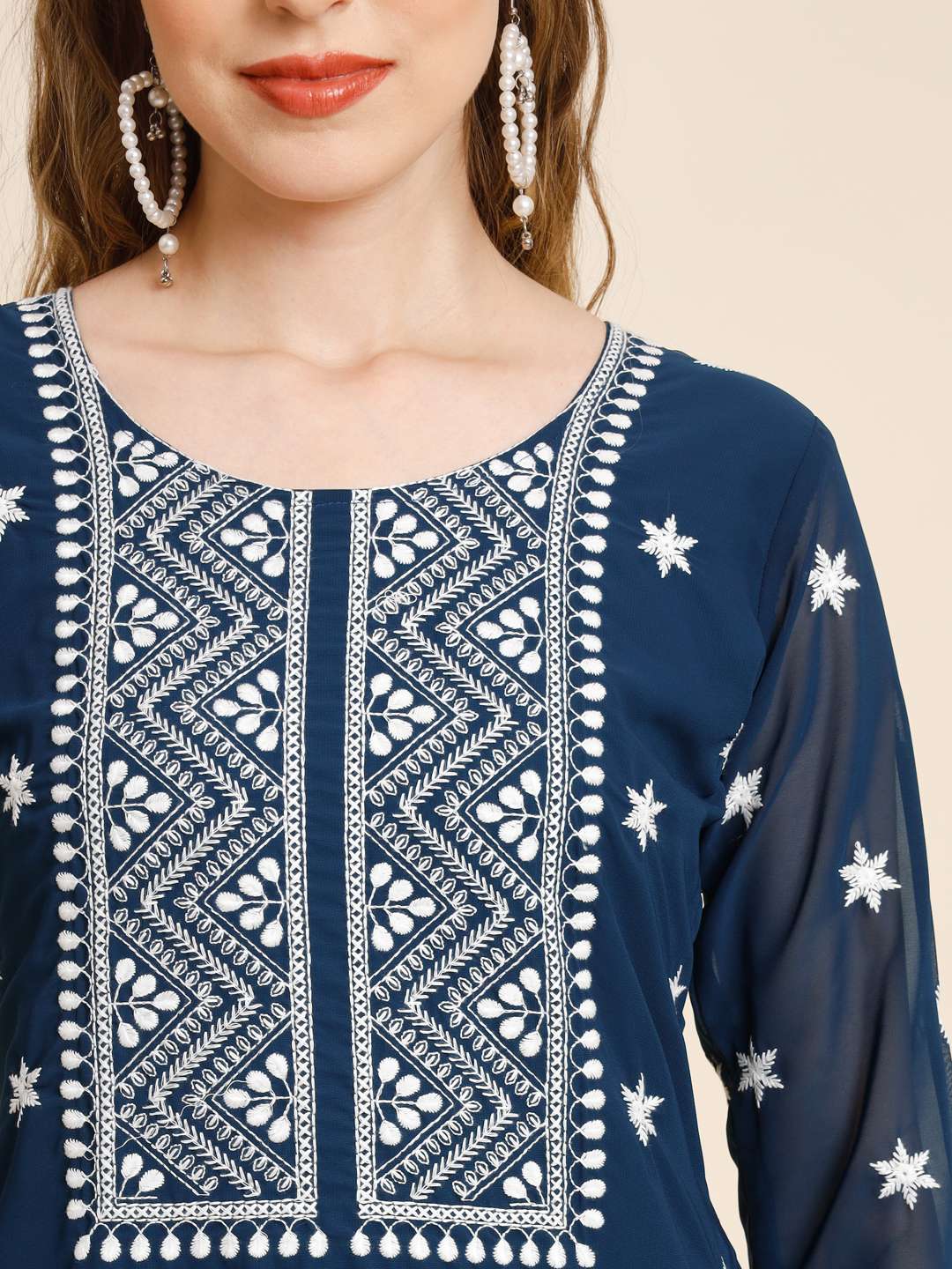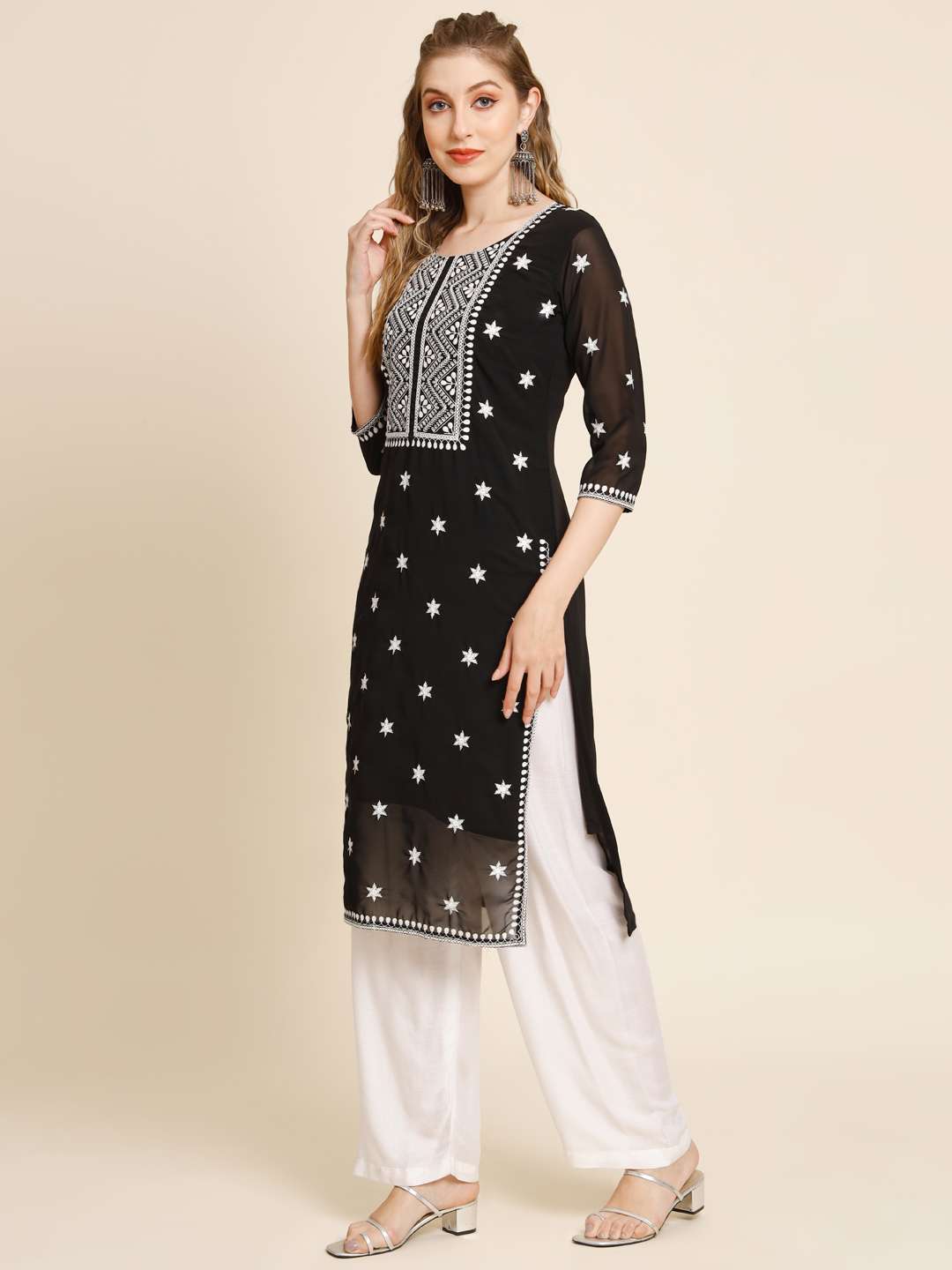 Maggi (Soft Georgette Kurta with Embroidery Work - Straight Shape - Three Quarter Sleeves - Round Neck) |