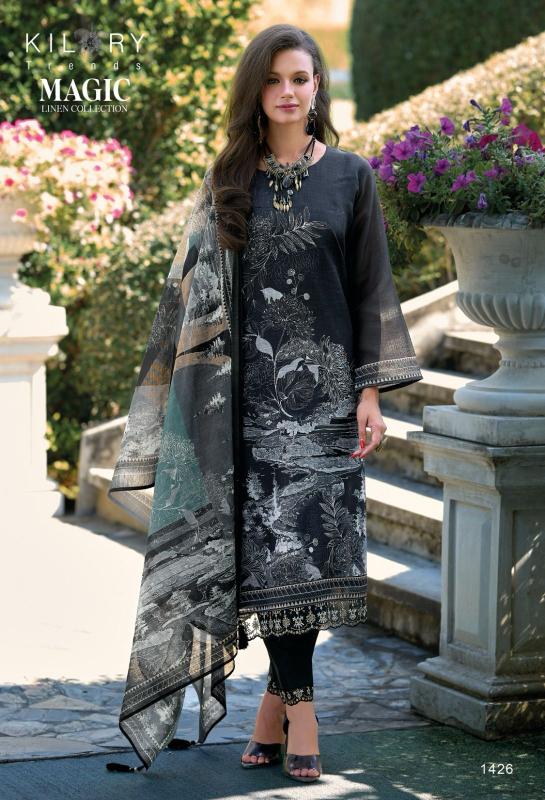 magic by kilory trends linen pretty look pakistani 3pcs dress