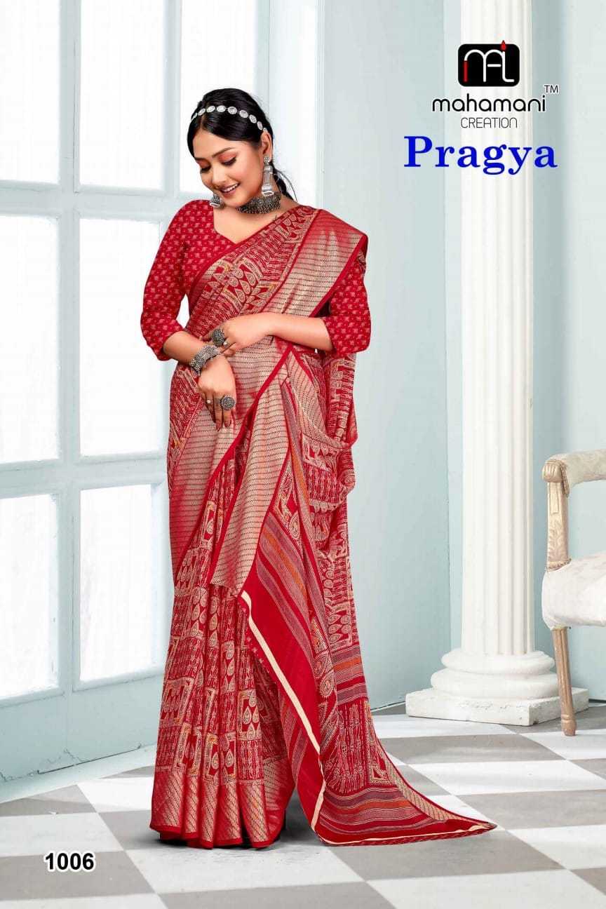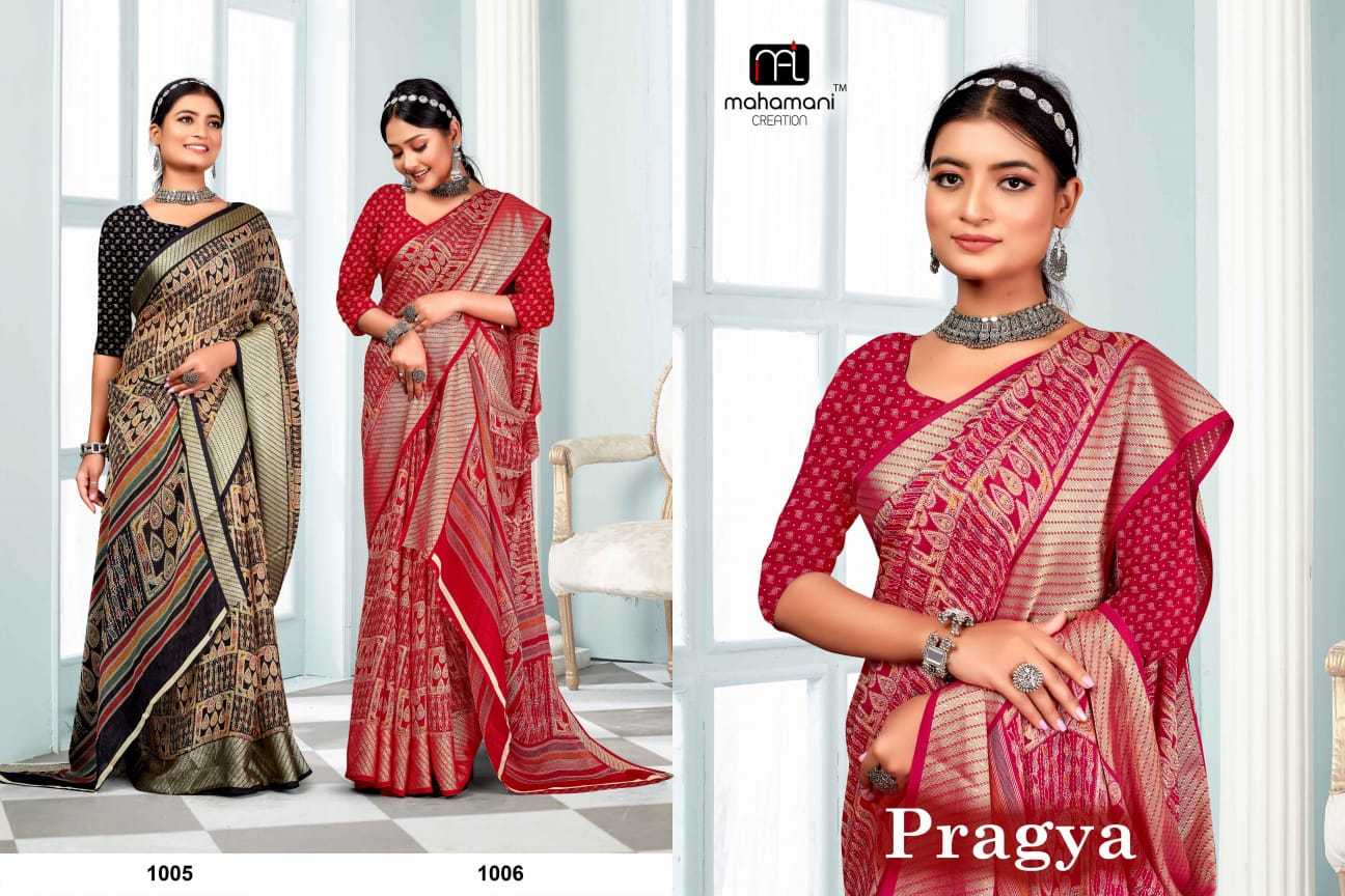 BRAND NAME - Mahamani Series 1001 to 1006 Zebra border dollmoss printed saree Price - 595/- per pcs GST EXTRA |