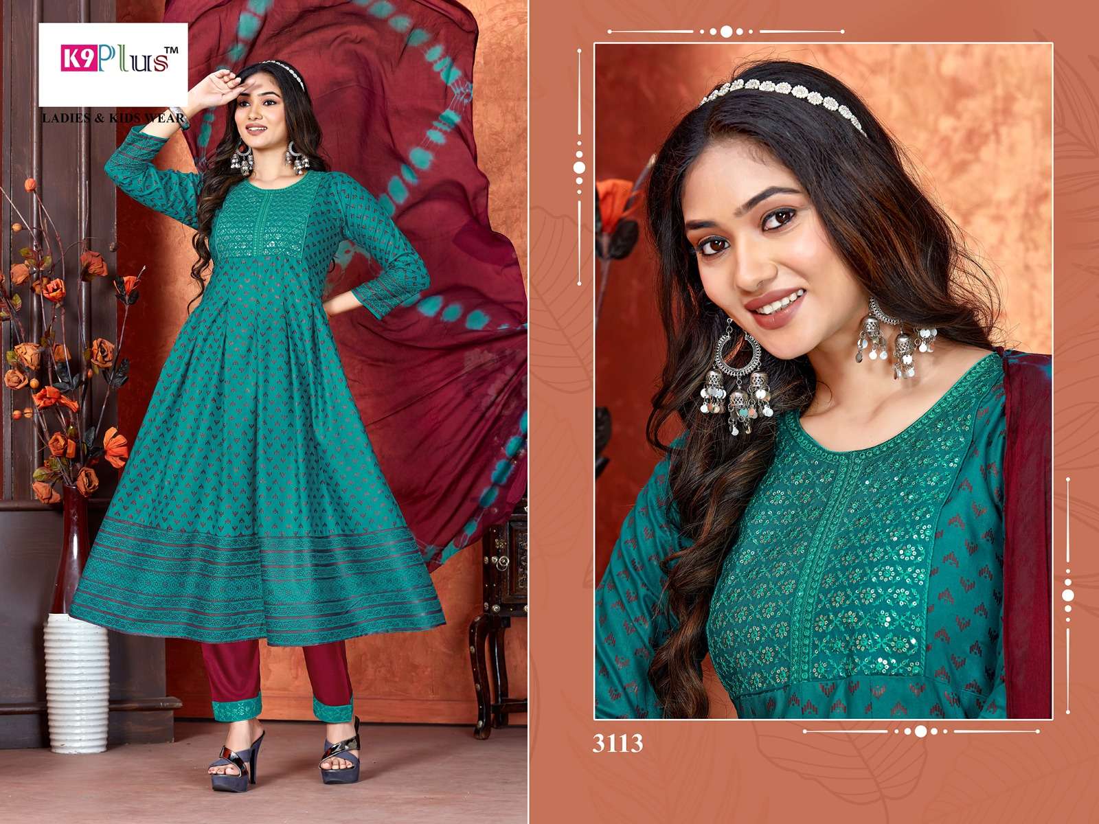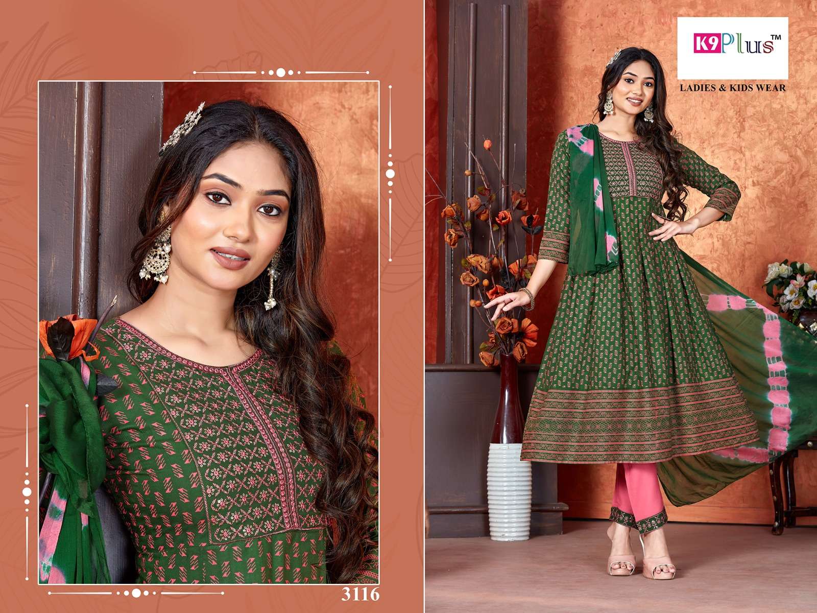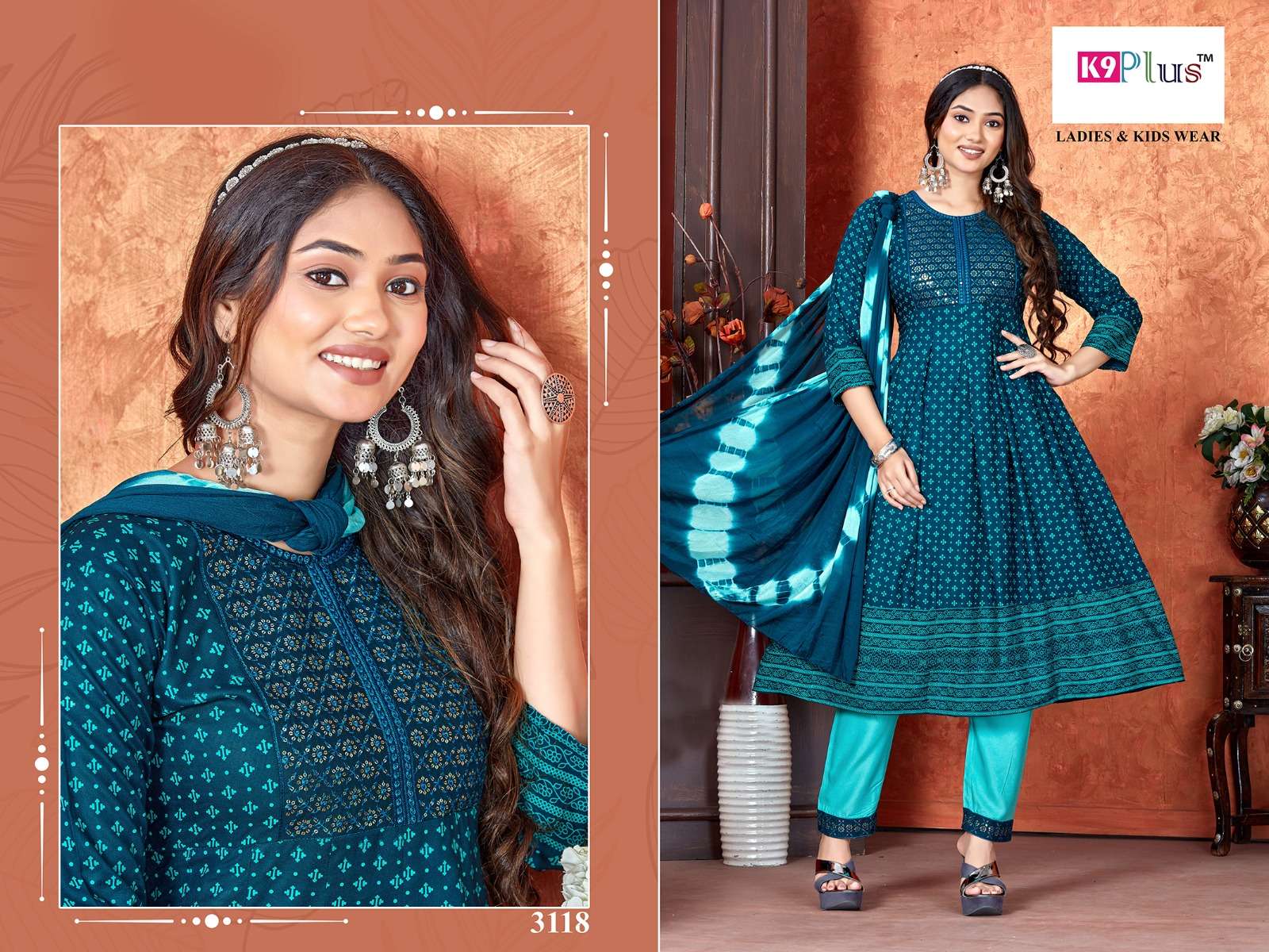 maharani vol 5 by k9 plus fancy 3pcs set amazing rayon kurti pant and dupatta