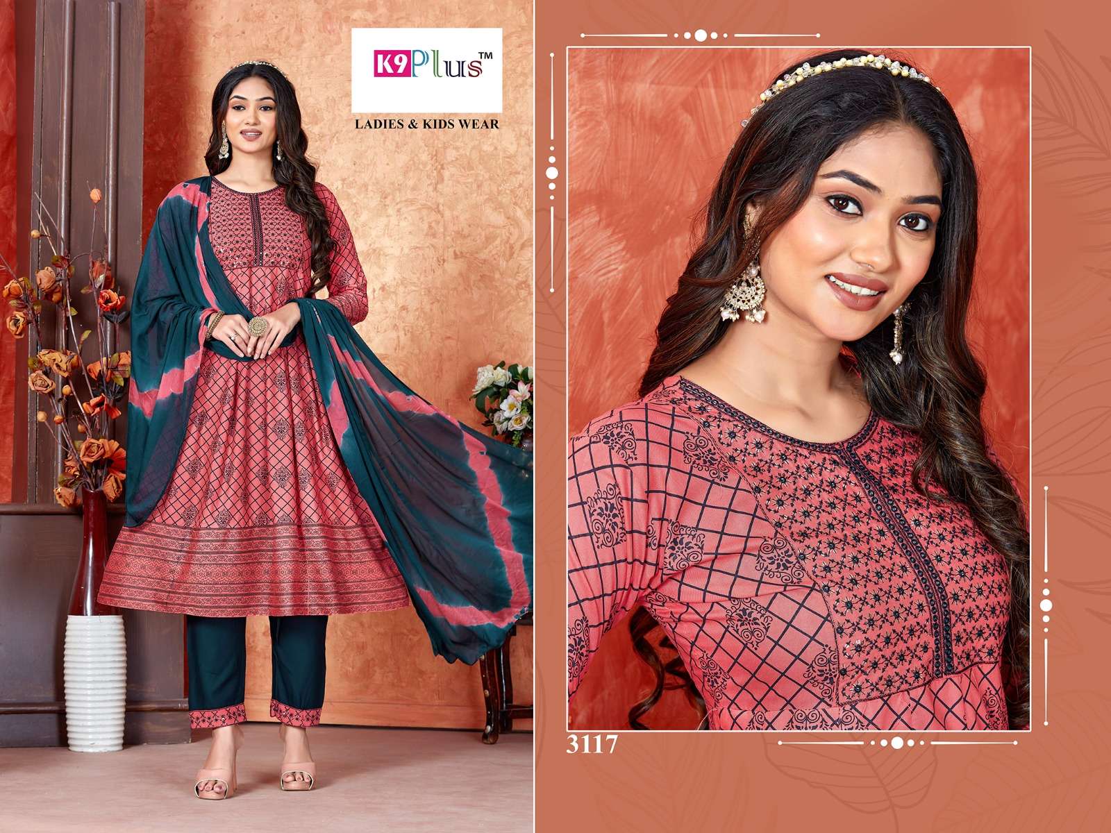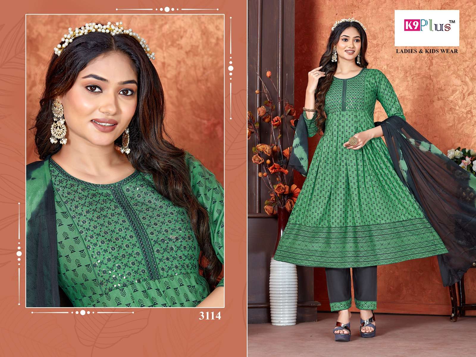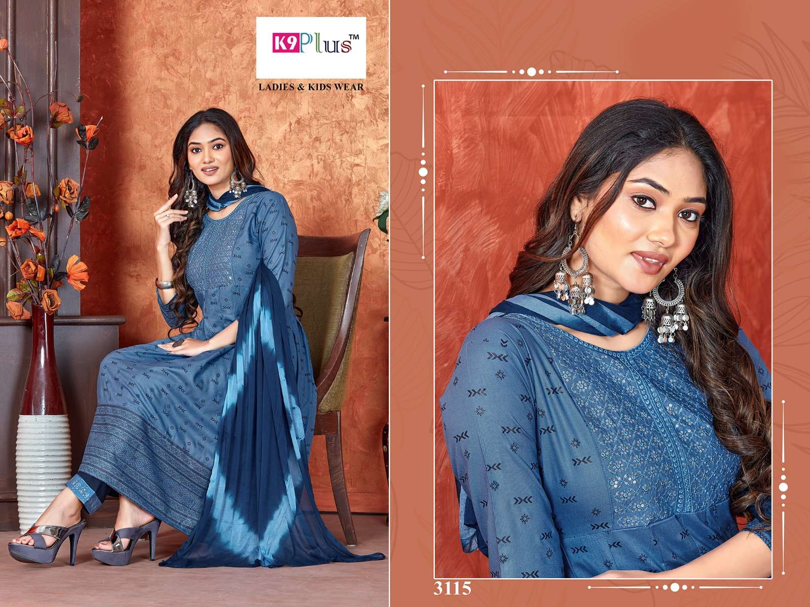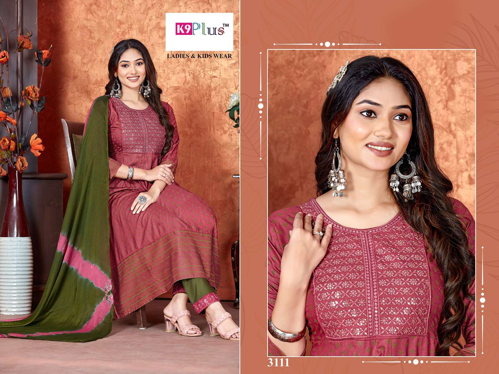 maharani vol 5 by k9 plus fancy 3pcs set amazing rayon kurti pant and dupatta