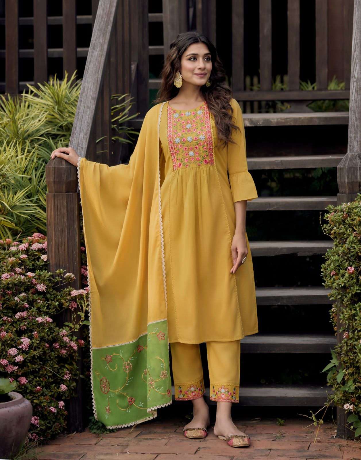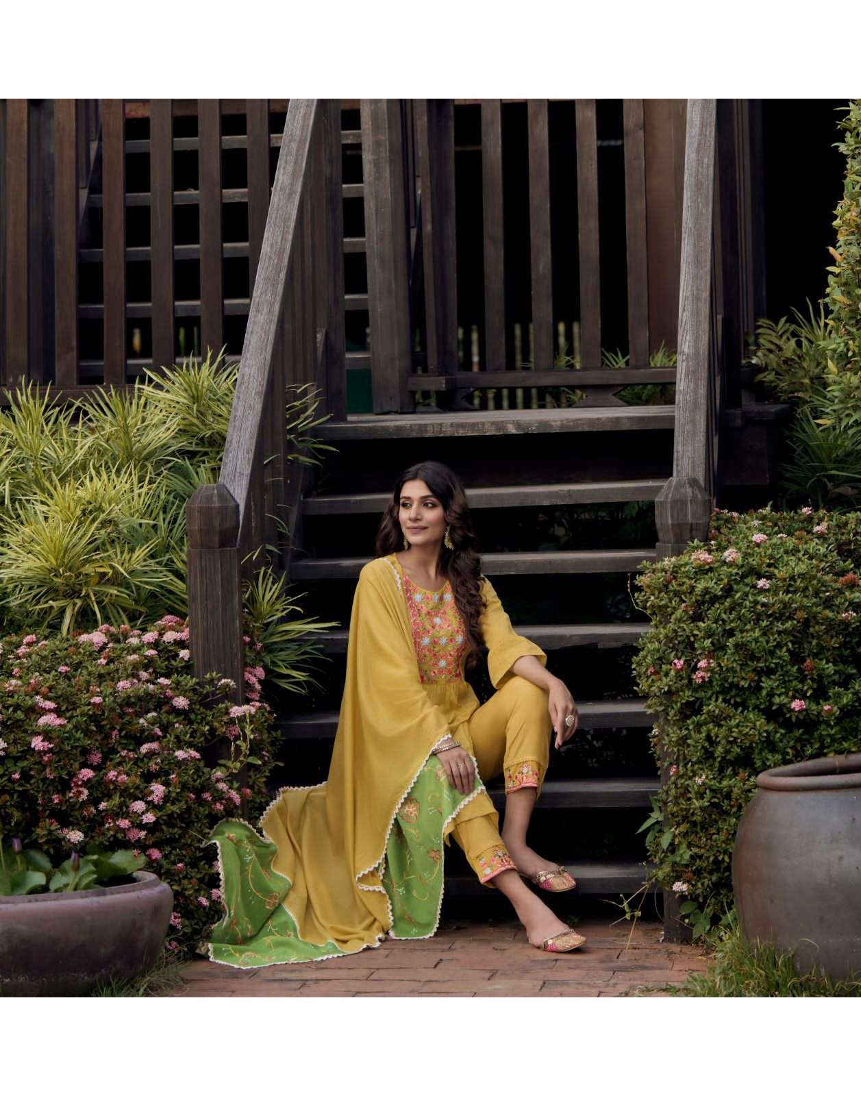 mahek by lily & lali handwork straight kurti with pant and dupatta