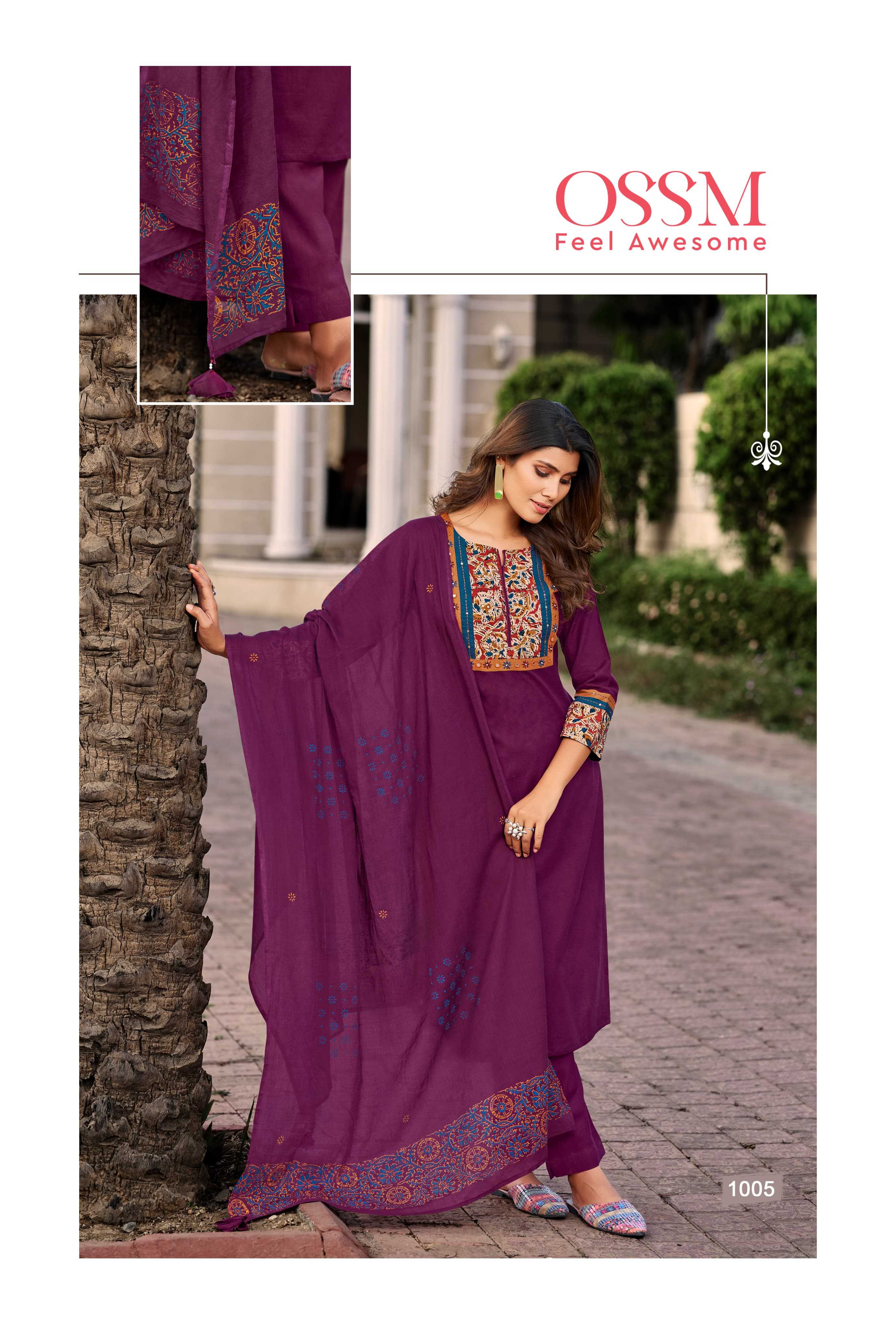 OSSM Catalouge : 💃 MAHEK 💃 PREMIUM COTTON COLLECTION Fabric in Top : Premium Cotton Flex Sleeves type : 3/4th Rate : 1025/- per pcs + GST 5% Set to set FEELING AWESOME 😊 |