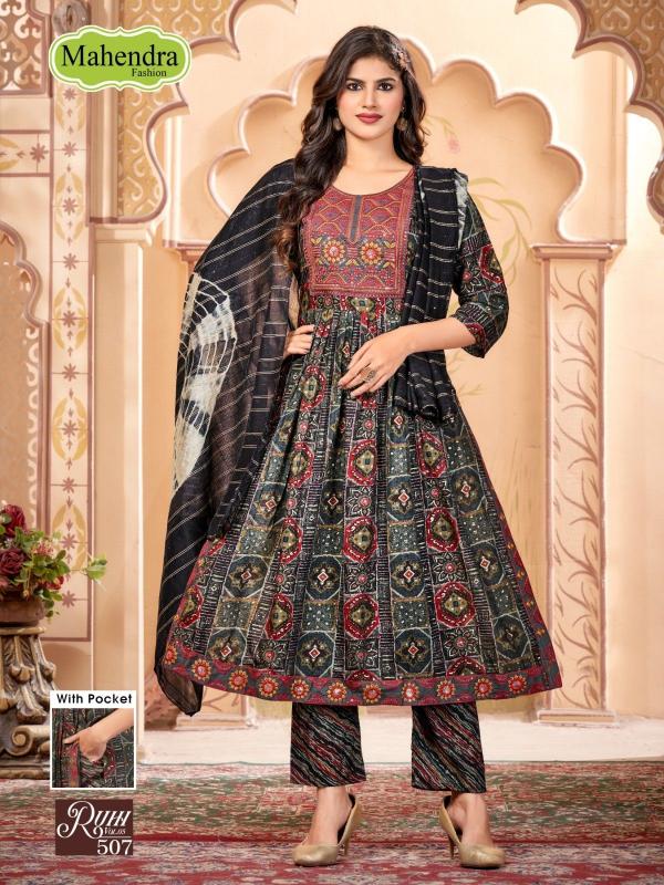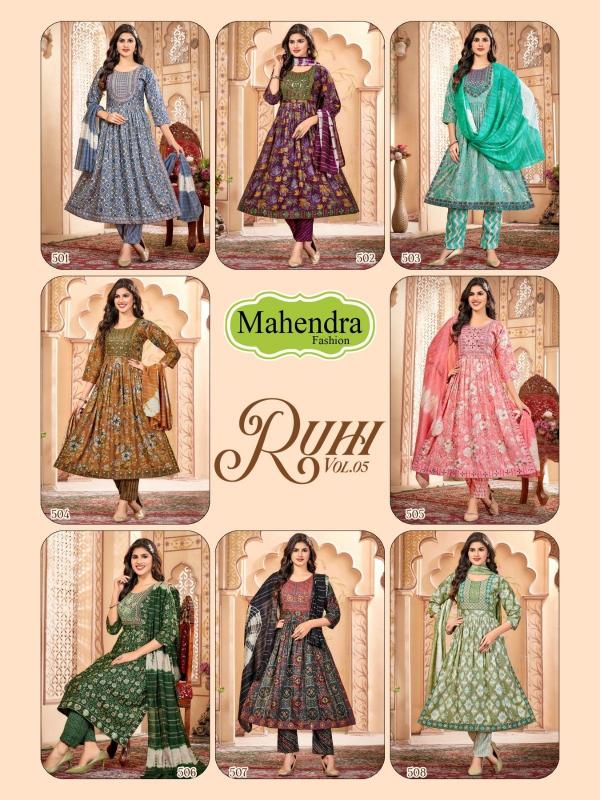 mahendra fashion ruhi vol 5 capsule print readymade casual nayra suit