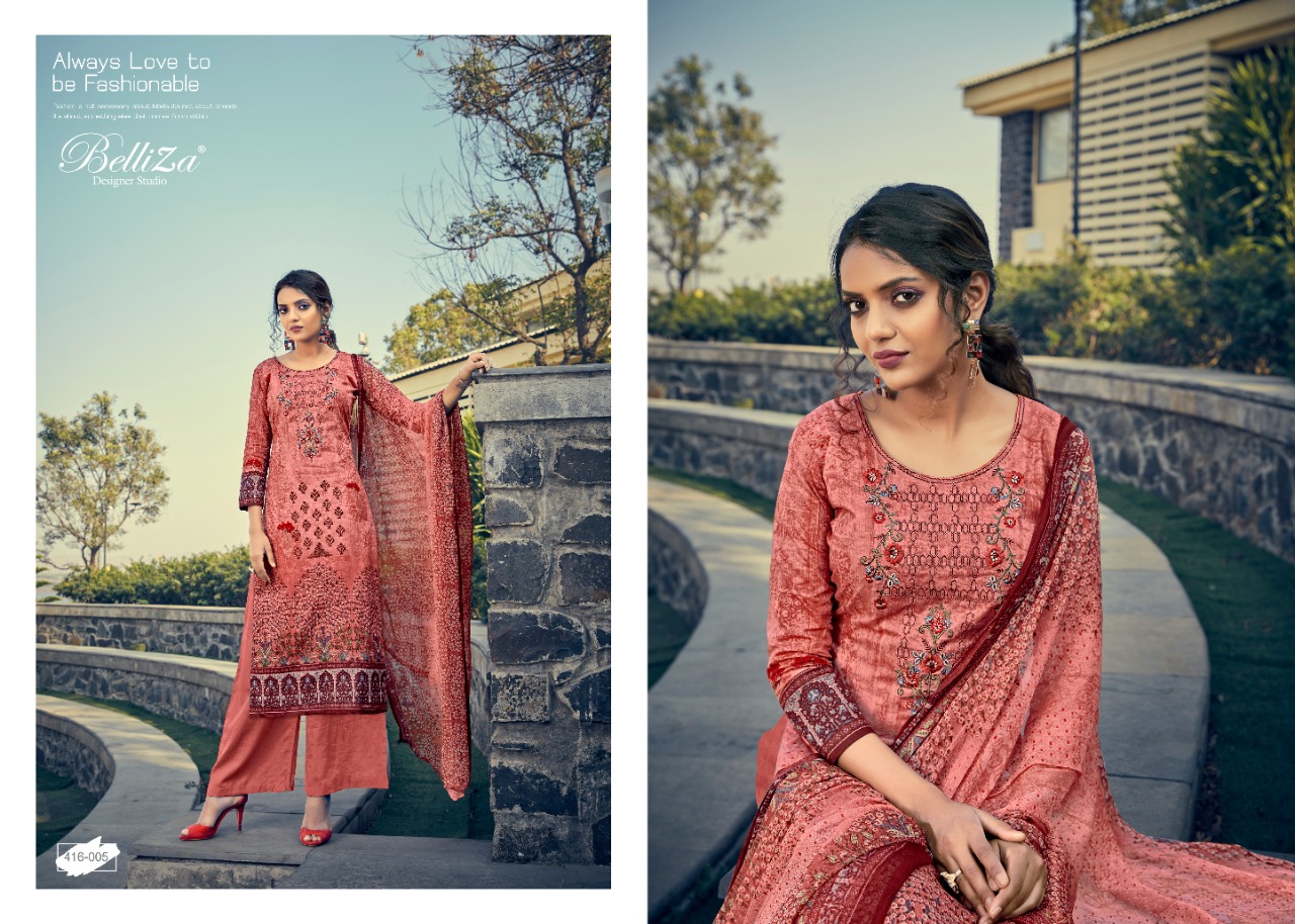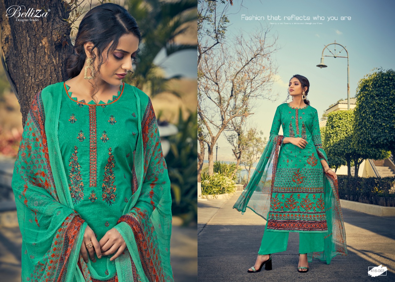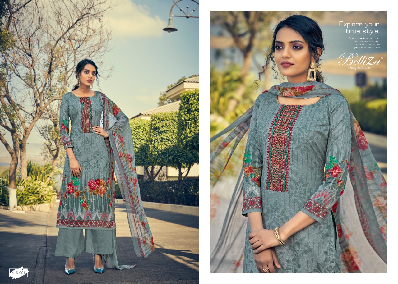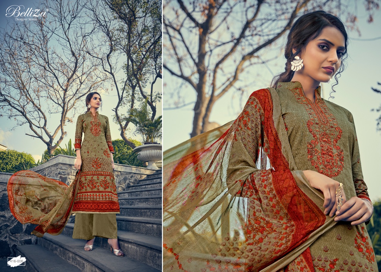 Belliza Designer Studio Presents Latest Collection Launched on 10-06-2020. Presenting Beautiful collection of 8 PCS with Unstitched .