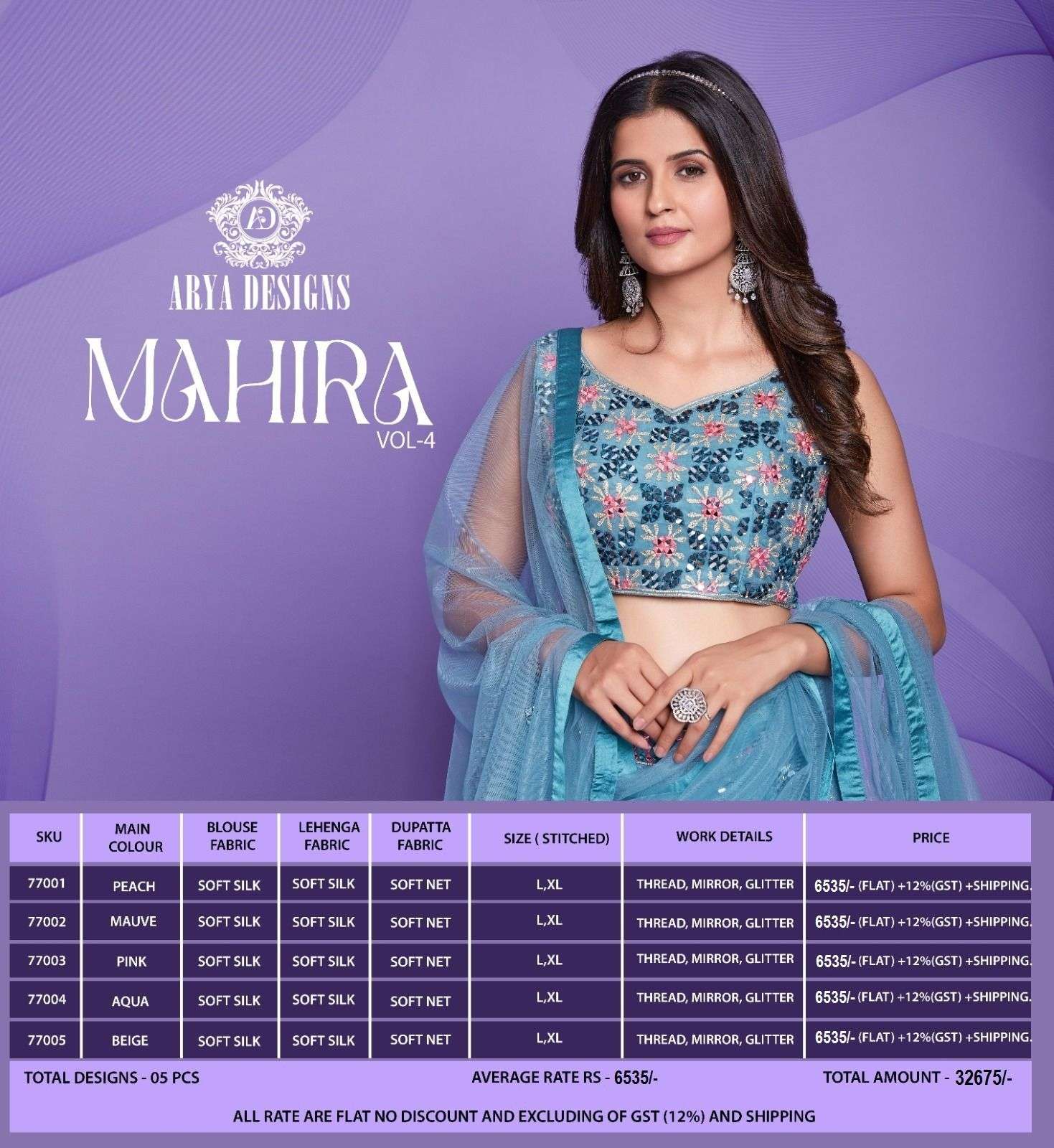 Hello... Greetings from ARYA DESIGNS..! We have introduced a New catalog "MAHIRA VOL.4" "MAHIRA VOL.4" =========================================