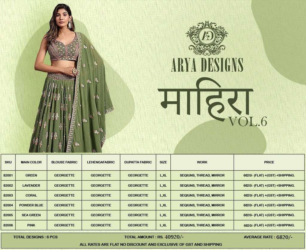mahira vol 6 by arya designs beautiful designer readymade lehenga choli collection