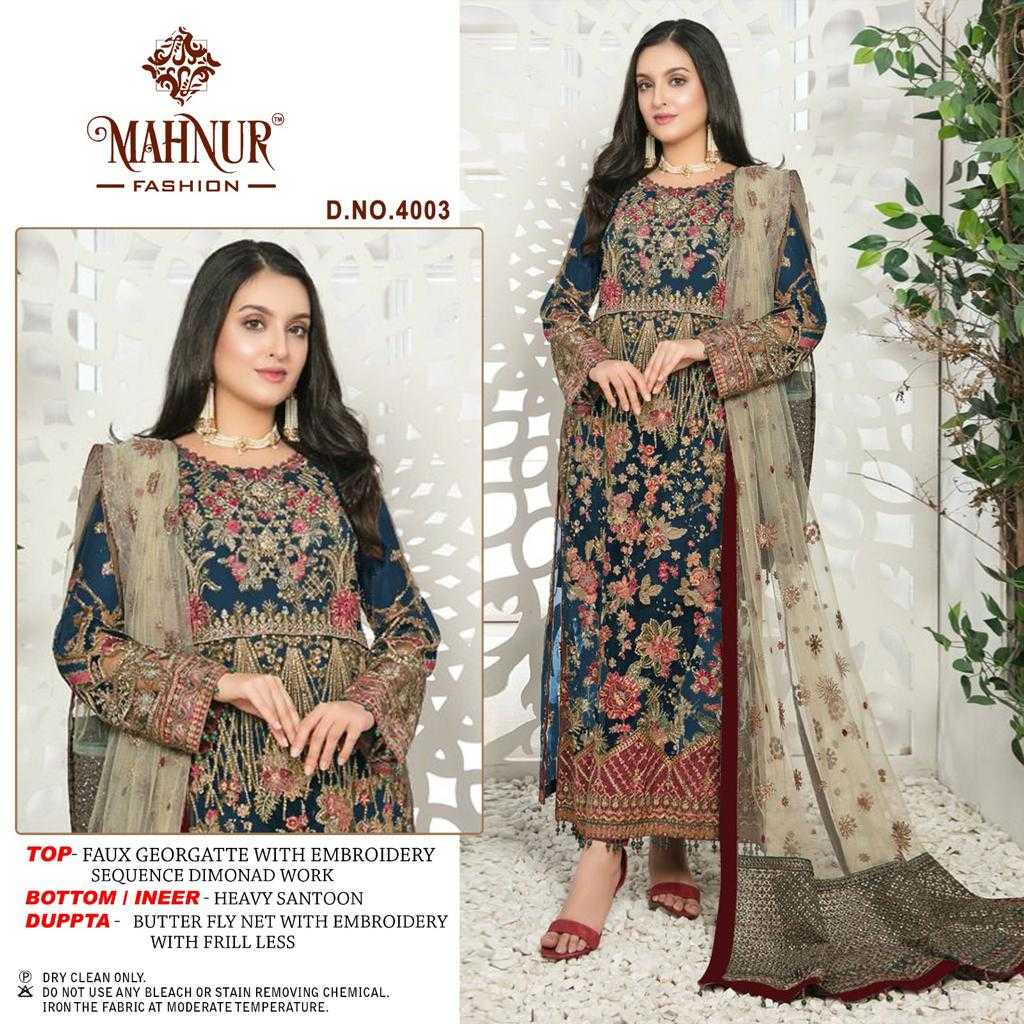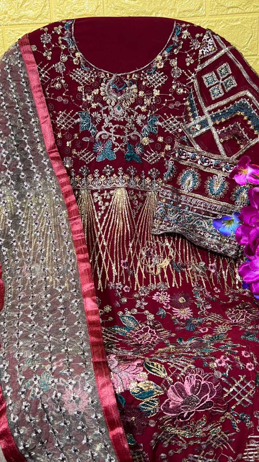Dear Presenting The Most Hittest Bridal Desgin 😍 🌹MAHNUR FASHION ™️🌹 👇Fabric Details👇 👗Top:- Havey georgette beautiful with fancy embroidery work Daimond moti work 👖Bottom/inner :- havey Santoon Duptta:- Butterfly net Embroidery work Frill less *Pcs- 3 degine catloge * GST EXTRA |