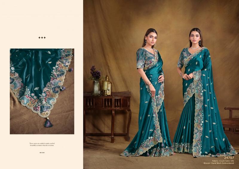 Our New Premium Designer Festive Wear Saree Collection Brand : Mahotsav Catalog : Mohmanthan Tarini (24700) Series : 24705 To 24715 Price :- Saree Fabric : Attached Blouse : Unstitched Occasion : Festival Wear, Casual Wear, Party Wear |