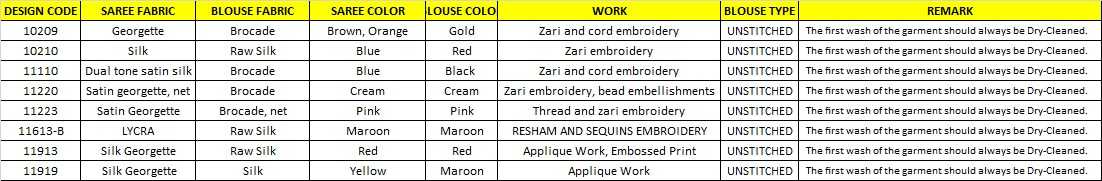 | Note | Stitching available on customer Requirment For Sarees , Salwar Kameez, Lehengha.(i.e M,L,XL,XXL). |