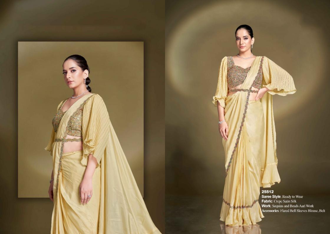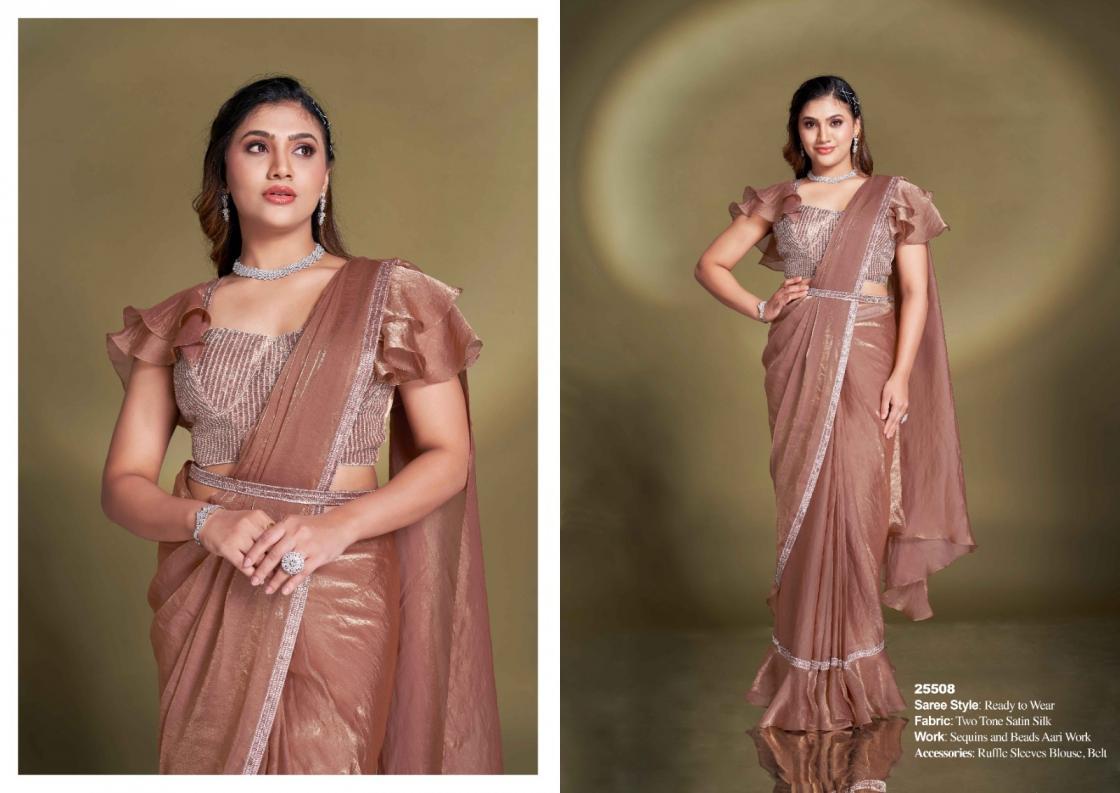 ♻ OUR NEW READY-TO-WEAR DESIGNER SAREE COLLECTION ♻️ BRAND NAME : MAHOTSAV CATALOG NAME : "MOHMANTHAN 25500 SERIES BONITA PRICE :- FABRIC DETAILS : ATTACHED SAREE TYPE: READY TO WEAR, ONE MINUTE SAREE BLOUSE TYPE: STITCHED (SIZE: UP to 38 Inch with margin of 42 inch) SINGLES & SET WISE AVAILABLE |