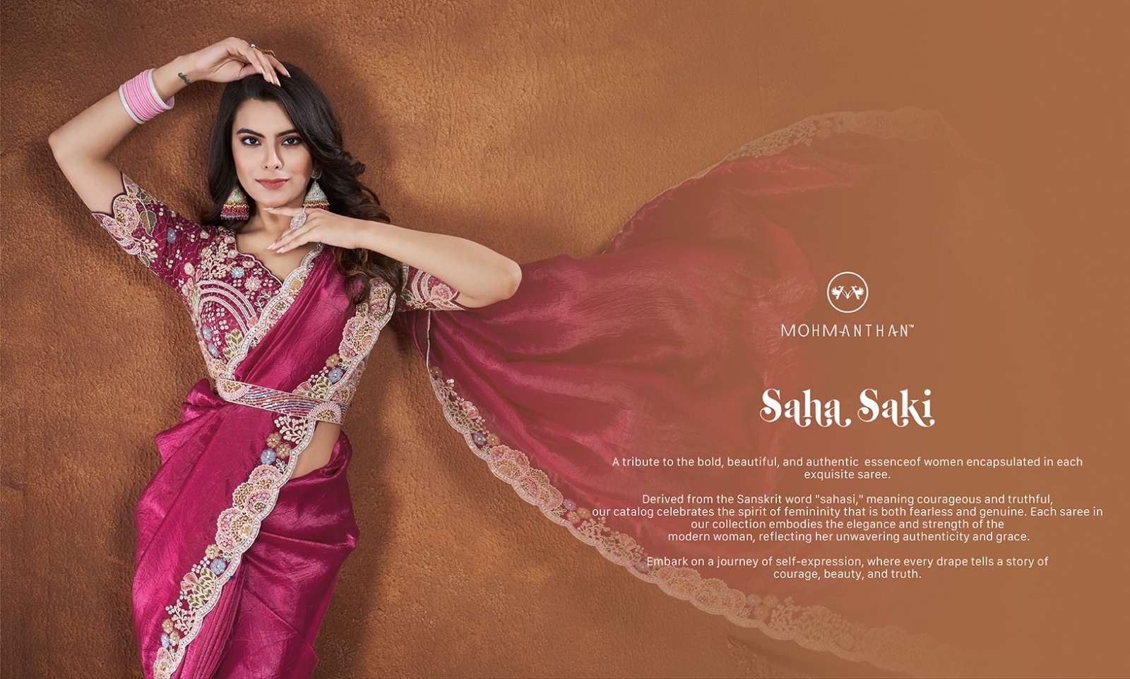 mahotsav mohmanthan saha saki 24000 series exclusive designer sarees with stitched fancy blouse