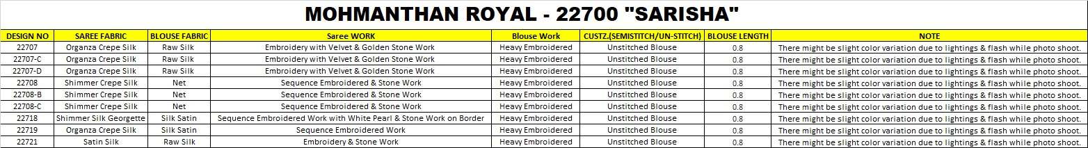 AVAILABILITY: On Booking MOHMANTHAN SARISHA 22700 SERIES
