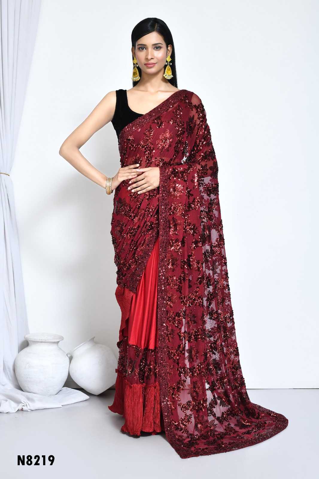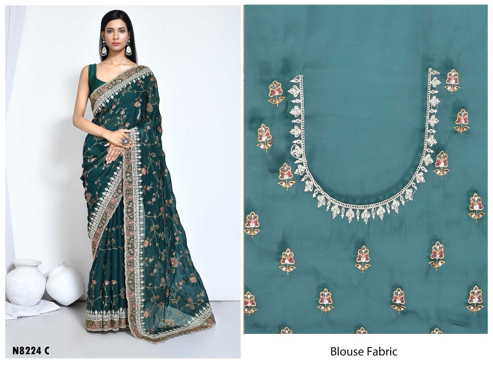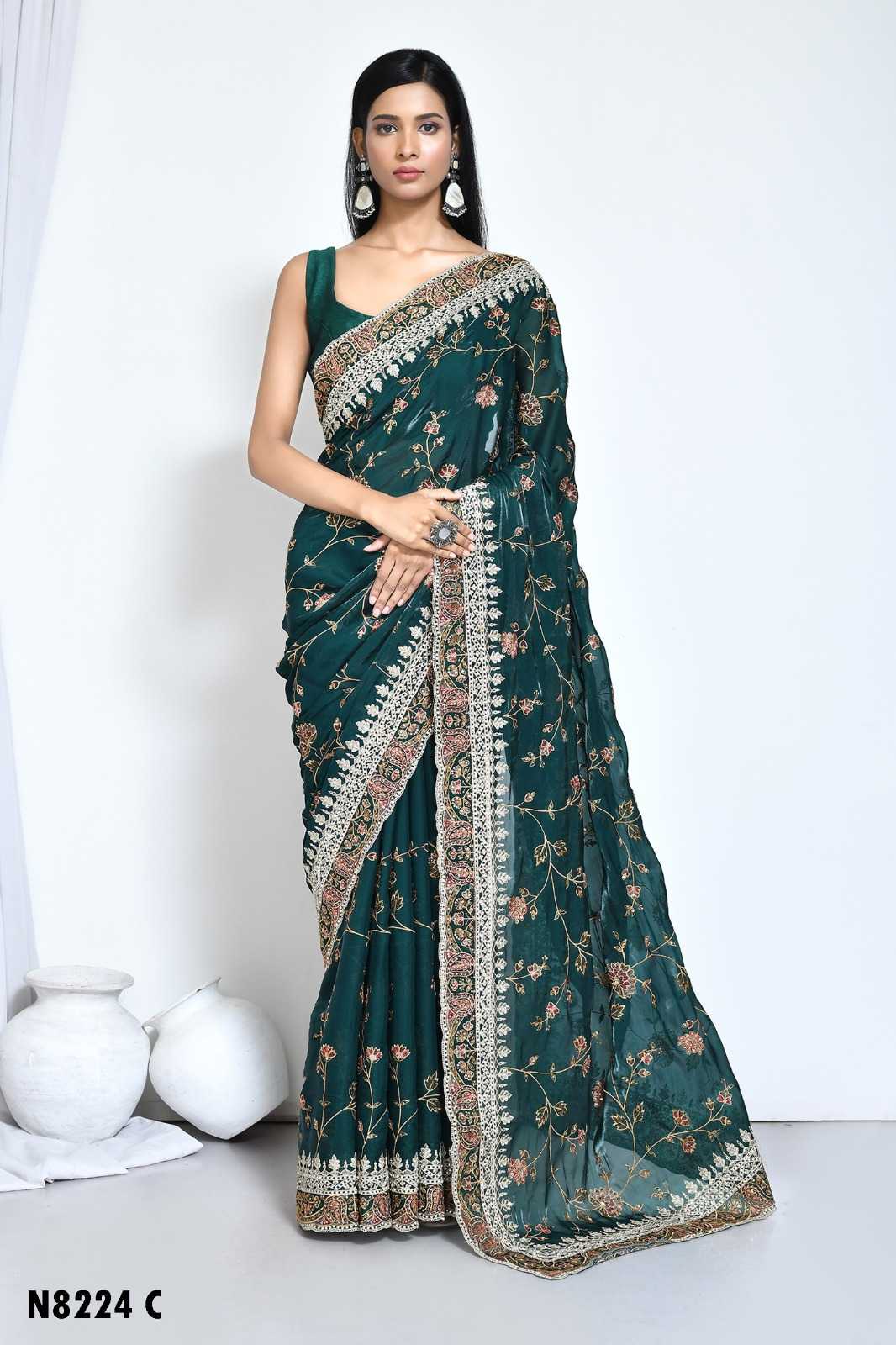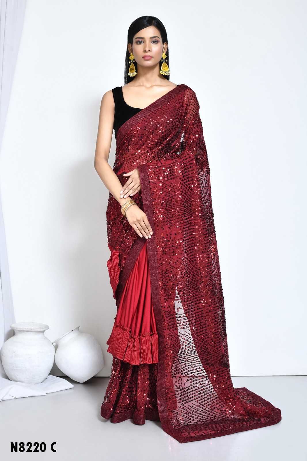♻ OUR NEW PARTY WEAR DESIGNER SAREE COLLECTION ♻️ BRAND NAME : MAHOTSAV CATALOG : "NIMAYA BENZY VOL 02 PRICE :- 5% GST EXTRA FABRIC -: ATTACHED BLOUSE TYPE : UN STITCHED |