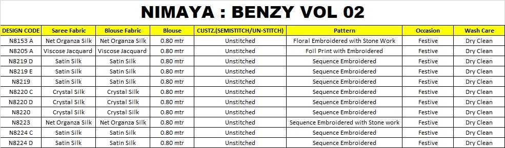 BOOK CATALOGUE NIMAYA BENZY VOL 2 ON KRISHNA CREATION. CALL ON +91-8866778727.