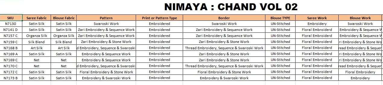 BRAND NAME : MAHOTSAV CATALOG NAME : NIMAYA-CHAND VOL 02 PRICE : * + 05%GST SAREE FABRIC : ATTACHED BLOUSE FABRIC : ATTACHED SET WISE AVAILABLE 👇 |