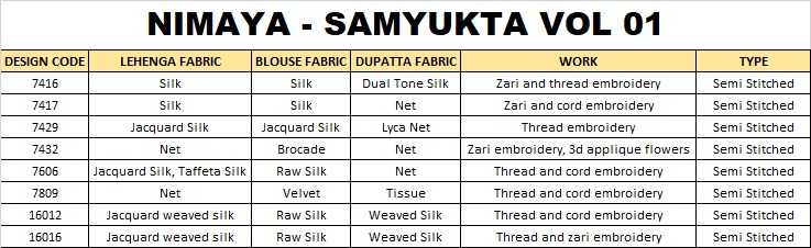OUR DESIGNER PARTY WEAR LAHENGA CHOLI COLLECTION ♻️ BRAND NAME : MAHOTSAV CATALOG : "NIMAYA - SAMYUKTAVOL 01 PRICE :- * FABRIC -: ATTACHED TYPE : SEMI STITCHED |