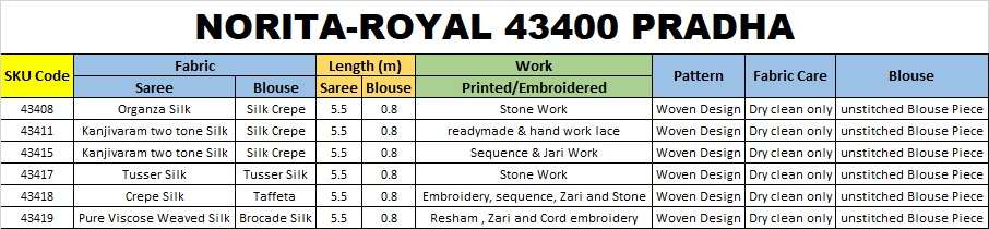 AVAILABILITY: On Booking NORITA 43400 SERIES PRADHA