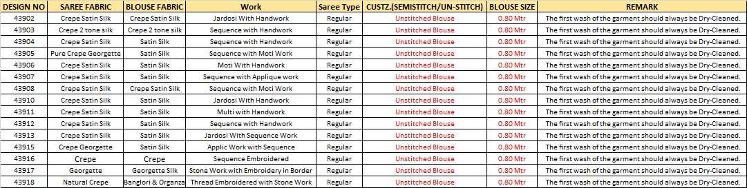 | Note | Stitching available on customer Requirment For Sarees , Salwar Kameez, Lehengha.(i.e M,L,XL,XXL). |