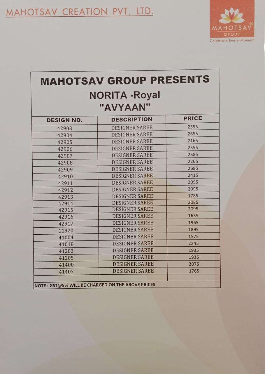 mahotsav norita avyaan 42903-42917 fabulous designer party wear sarees